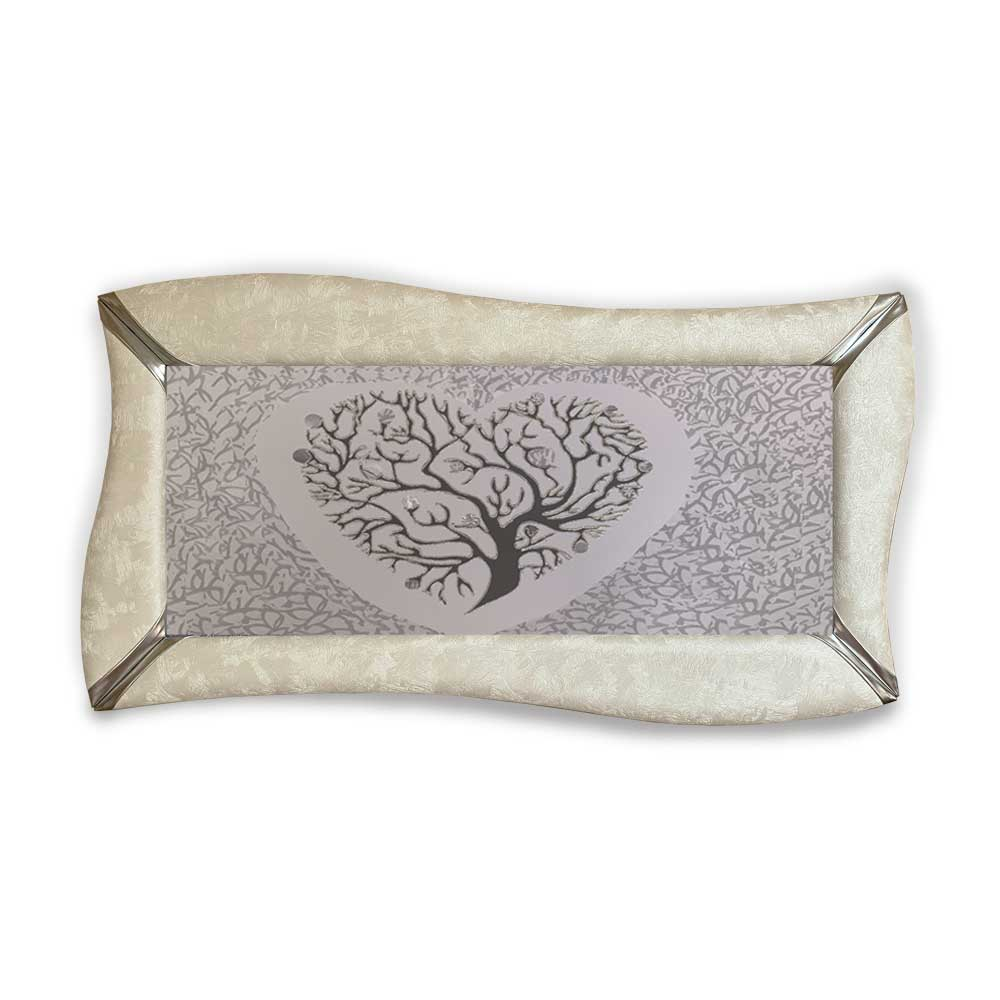 Quadro betti ecopelle crema albero della vita 15 canvas+glitter argento 148x78cm