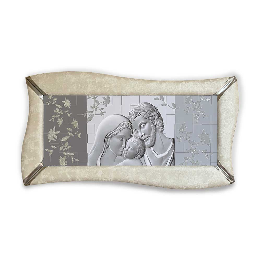Quadro sacra famiglia su canvas cornice ecopelle color crema e glitter | E-Italy | 100% Made in Italy