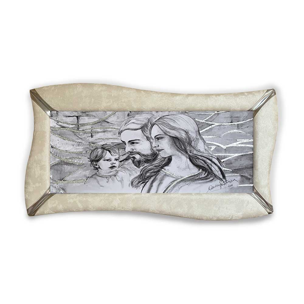 Quadro sacra famiglia su canvas cornice ecopelle color crema e glitter | E-Italy | 100% Made in Italy