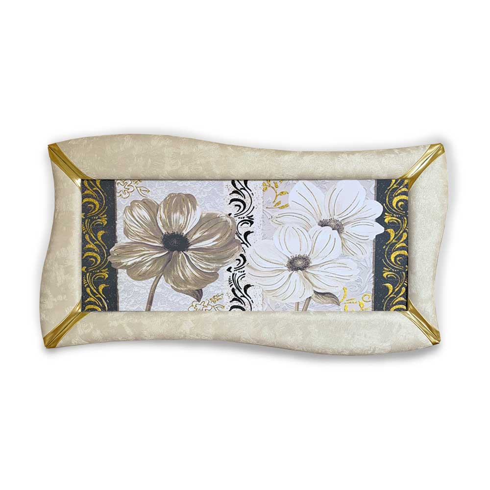 Quadro disegno floreale su canvas cornice ecopelle crema e glitter | E-Italy | 100% Made in Italy