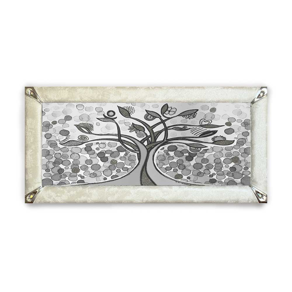 Quadro albero della vita su canvas cornice ecopelle crema e glitter | E-Italy | 100% Made in Italy