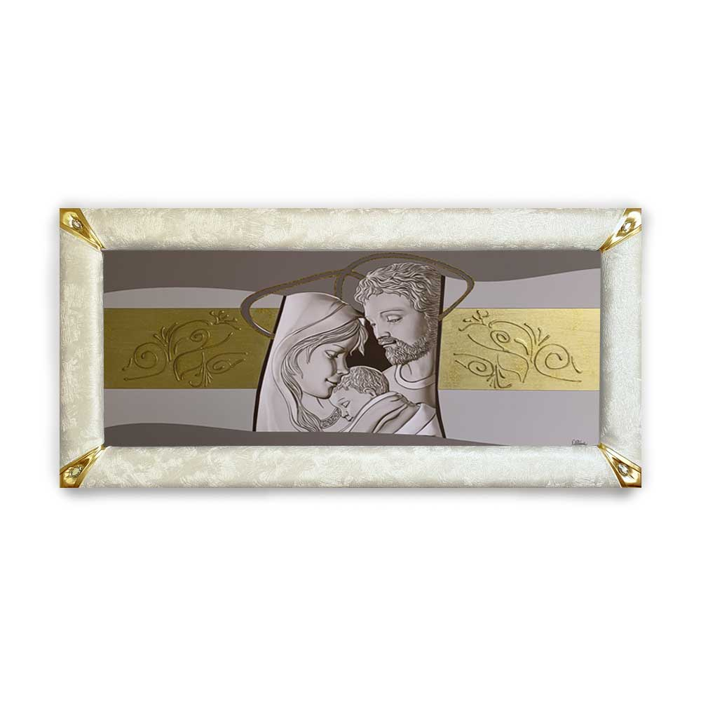 Quadro sacra famiglia su canvas cornice ecopelle color crema e glitter | E-Italy | 100% Made in Italy