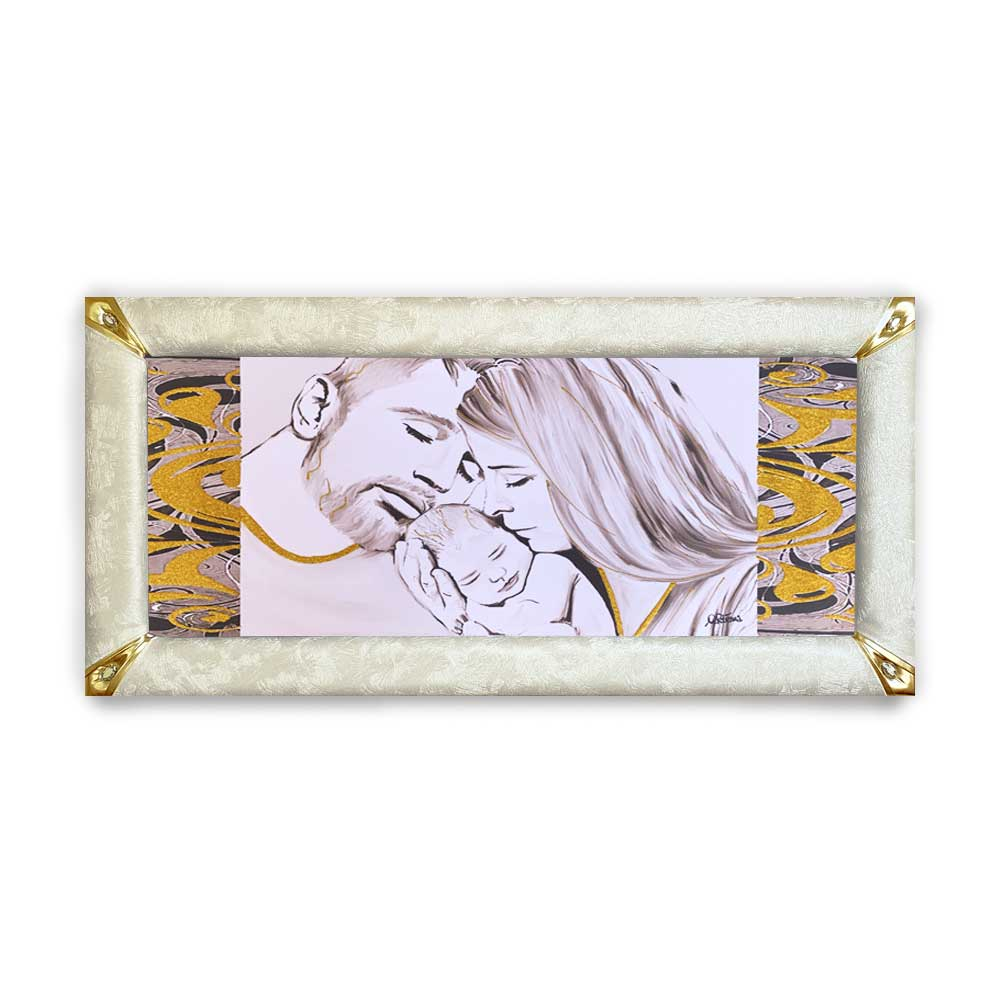 Quadro sacra famiglia su canvas cornice ecopelle color crema e glitter | E-Italy | 100% Made in Italy