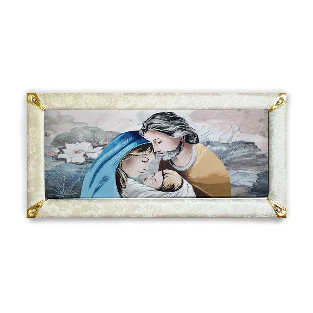 Quadro sacra famiglia su canvas cornice ecopelle color crema e glitter | E-Italy | 100% Made in Italy