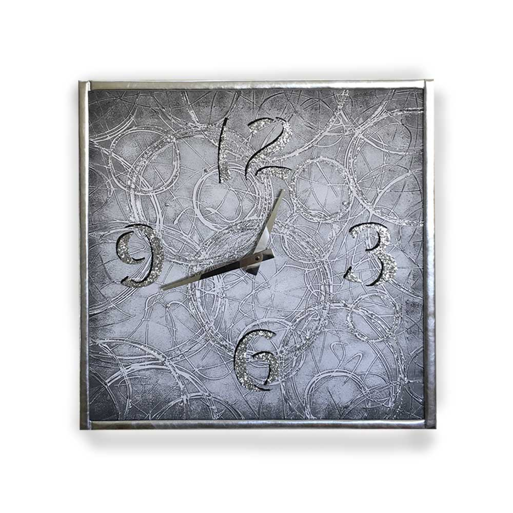 Orologio da parete cornice in ecopelle color argento decoro astratto | E-Italy | 100% Made in Italy