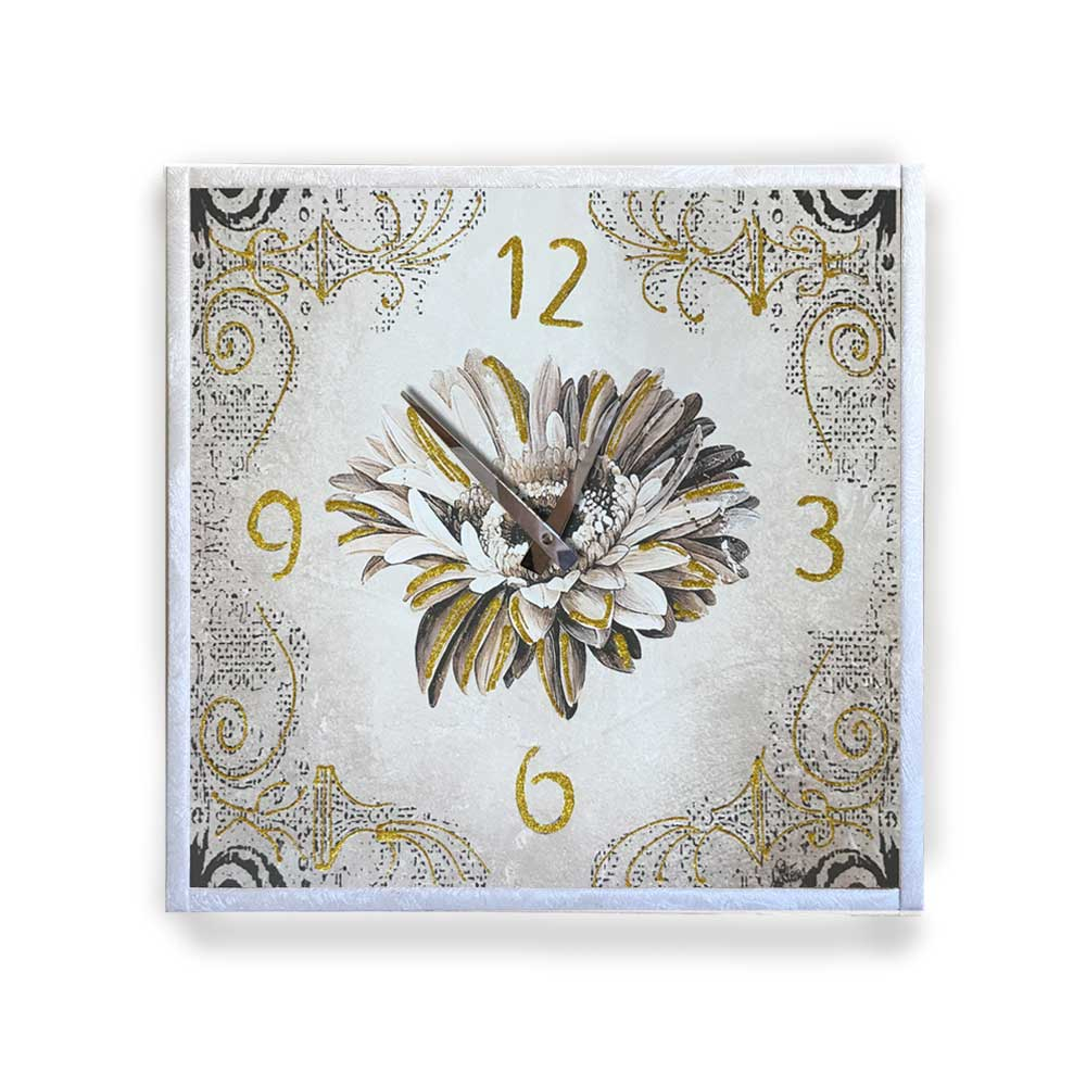 Orologio da parete cornice in ecopelle crema floreale 30 glitter oro 57x57 cm