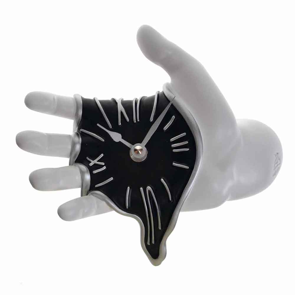 Orologio da muro surrealista Mano in resina decorata bianco nero Made in Italy | E-Italy | 100% Made in Italy