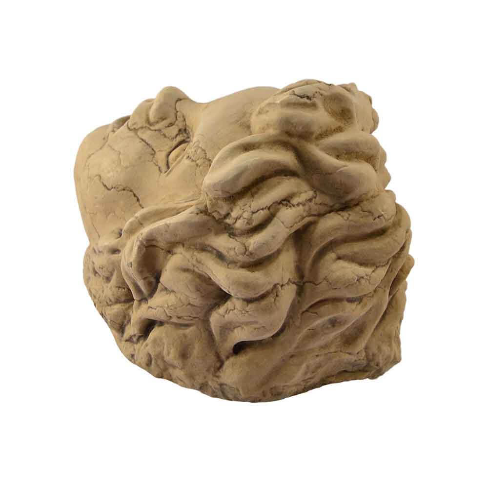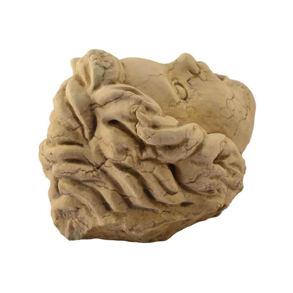 Quest'opera realizzata a mano in marmo Biancone Asiago ricorda la tipica raffigurazione plastica di una maschera con volto umano. Si può benissimo impiegare a parete come puro abbellimento o più comunemente per fontan con un foro all'interno della bocca per l'uscita dell'acqua. In questo caso è stata riprodotta la testa di un putto, che ben si presta all'inserimento in dimore di pregio ed eleganza classica. Con la lavorazione "consumata dal tempo" sulla superficie questo manufatto replica le opere realizzate dagli antichi nei secoli passati. L'autenticità del prodotto artigianale di ricercata qualità MADE IN ITALY è garantita dall'incisione del marchio sui manufatti"ARTE 2000 Italy Hand carved".