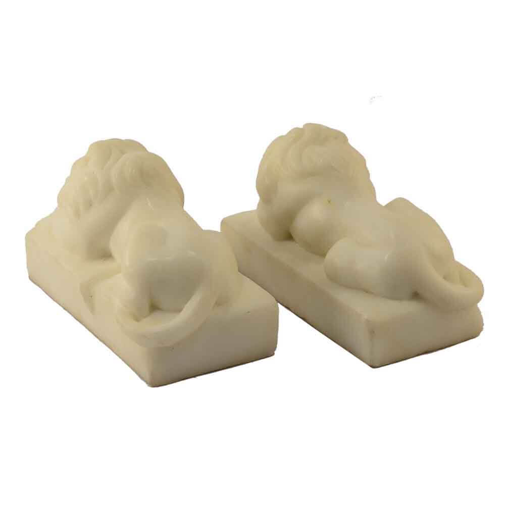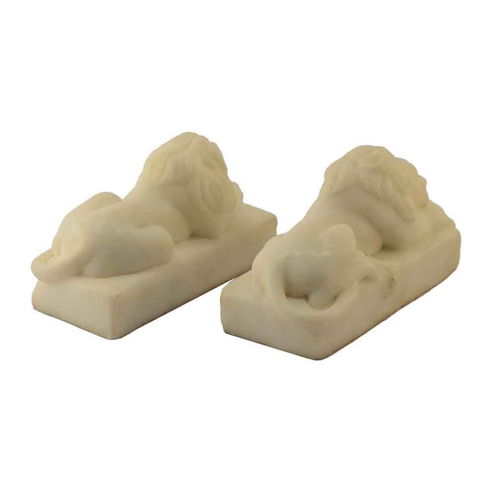 Queste opere realizzate a mano in Bianco Puro Carrara sono statue di piccole dimensioni scolpite a foggia di leoni sdraiati. Questo è il modo più usato in ogni epoca per raffigurare ed esprimere artisticamente le idee degli scultori. La lavorazione finale di lucidatura a mano esalta i colori naturali del marmo. Questi leoni si adattano perfettamente a qualunque stile di casa, possono essere usati come decorazione, fermacarte o ferma porte. Ideali per sorprendere con un dono originale e raffinato. L'autenticità del prodotto artigianale di ricercata qualità MADE IN ITALY è garantita dall'incisione del marchio sui manufatti"ARTE 2000 Italy Hand carved".