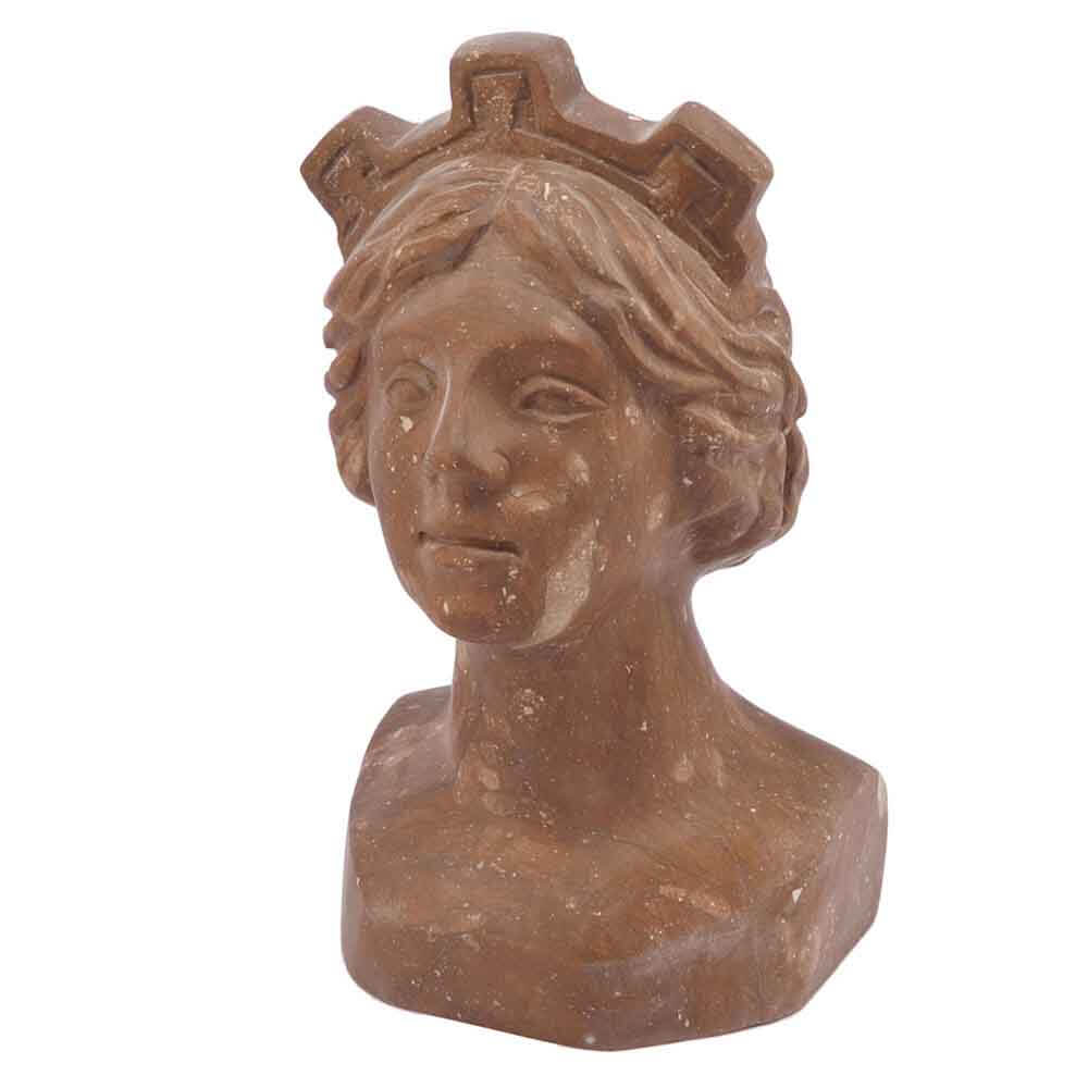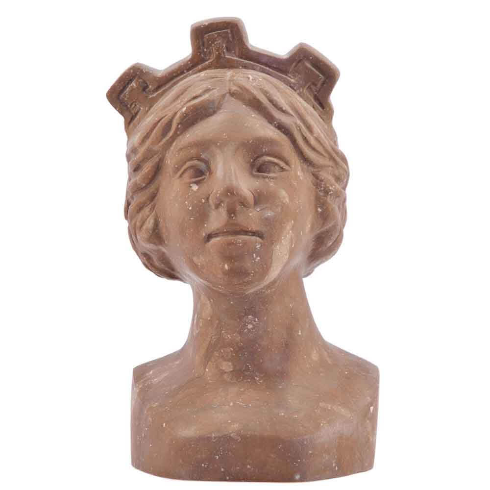 Quest'opera realizzata a mano in marmo Rosso La Secca è una statua di piccole dimensioni scolpita a foggia di testa di donna etrusca. Ogni artista nell'antichità si cimentava con opere simili per mettersi alla prova artisticamente. è un oggetto portafortuna che può trovare il collocamento ideale in dimore di pregio e particolare eleganza classica. L'autenticità del prodotto artigianale di ricercata qualità MADE IN ITALY è garantita dall'incisione del marchio sui manufatti"ARTE 2000 Italy Hand carved".