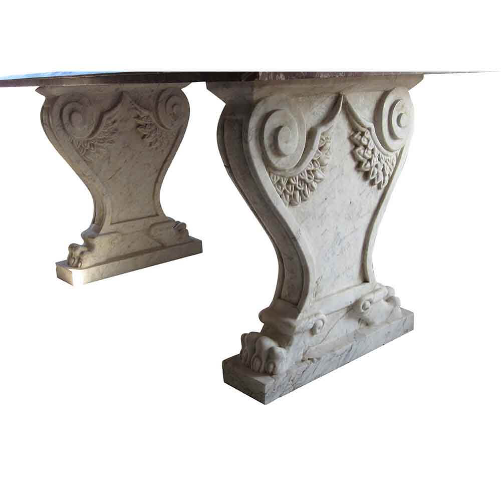 Queste opere realizzate a mano in marmo Bianco Carrara sono basamenti per tavolo soggiorno da utilizzare anche con piani tavolo in cristallo che ne esaltano la lavorazione. Con la lavorazione "consumata dal tempo" sulla superficie questi manufatti assomiglia alle opere fatte nei secoli passati. L'autenticità del prodotto artigianale di ricercata qualità MADE IN ITALY è garantita dall'incisione del marchio sui manufatti"ARTE 2000 Italy Hand carved".