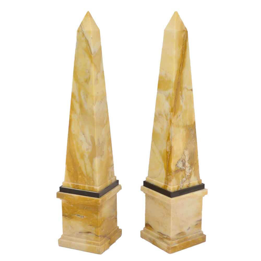 Coppia di obelischi decorativi in marmo Bianco Carrara scolpito a mano