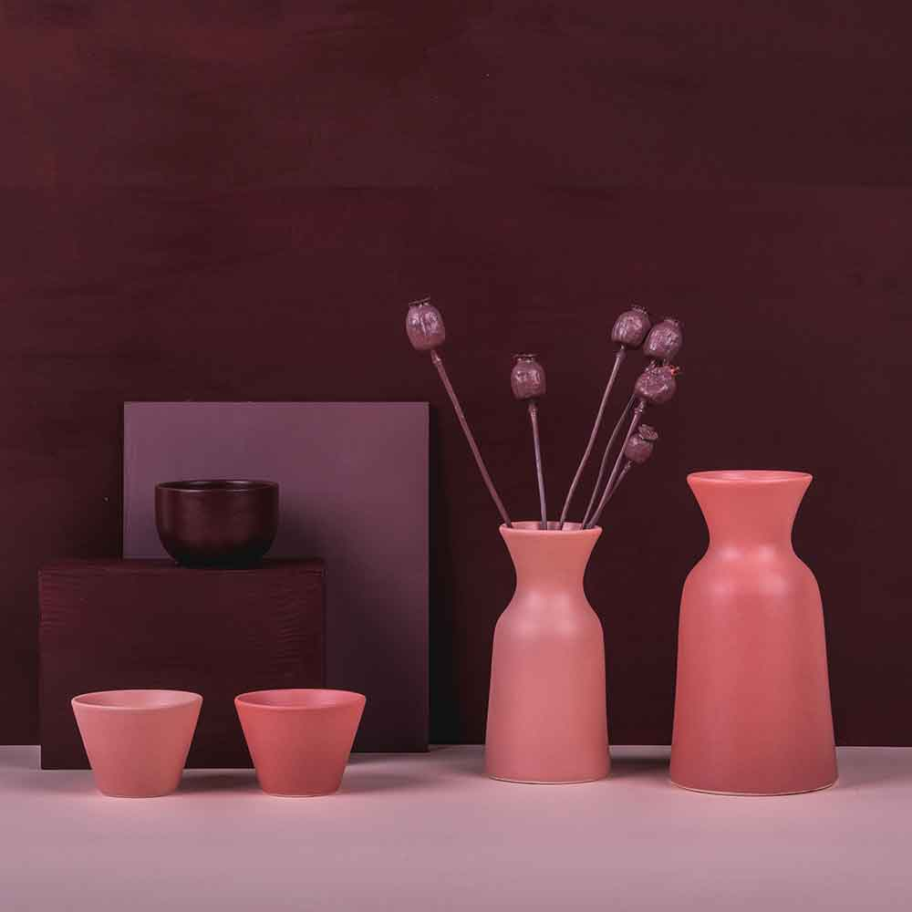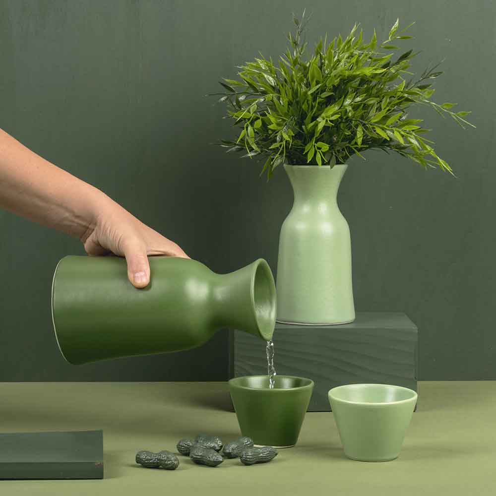 La collezione Sem Carafe di Federica Bubani è una famiglia di caraffe in ceramica che si prestano benissimo anche come vaso. La dimensione più grande ha la capienza di 1L e quella più piccola da 0,5L, ottime ad esempio per scaraffare il vino rosso! Questi vasi si abbinano in colore tono su tono con i bicchieri, che possono anche fungere da tazza o ciotola. Qualunque uso ne facciate sono un elemento decorativo di design che arricchisce la vostra tavola. In cucina sono perfetti grazie alla loro vernice opaca ad uso alimentare. La parola d’ordine qui è funzionalità con stile. Disponibile in diversi colori e tonalità: grigio chiaro e scuro, rosa chiaro e scuro, verde chiaro e scuro.