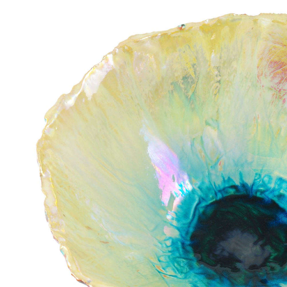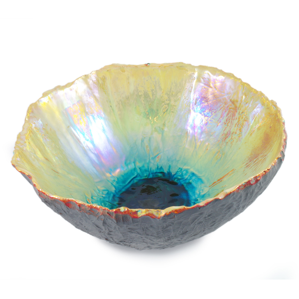Ciotola artigianale ceramica Faenza lustrata dorata turchese fumè | E-Italy | 100% Made in Italy