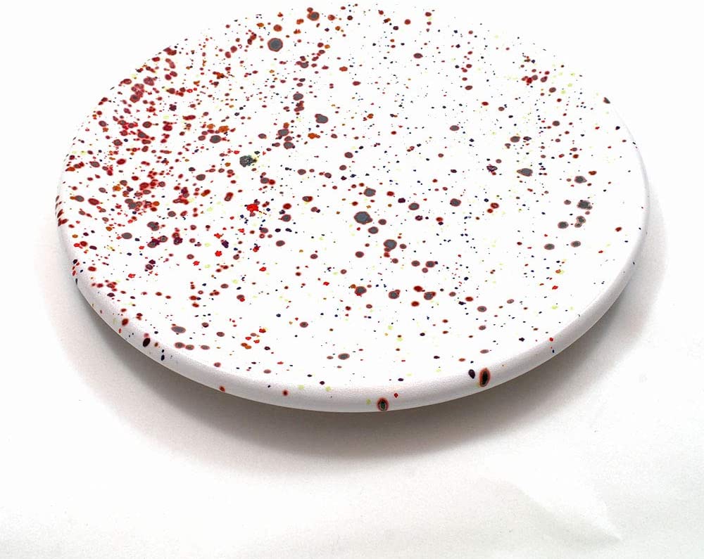 Piatto Piano in Ceramica di Faenza con Schizzi di Colori Collezione Pois