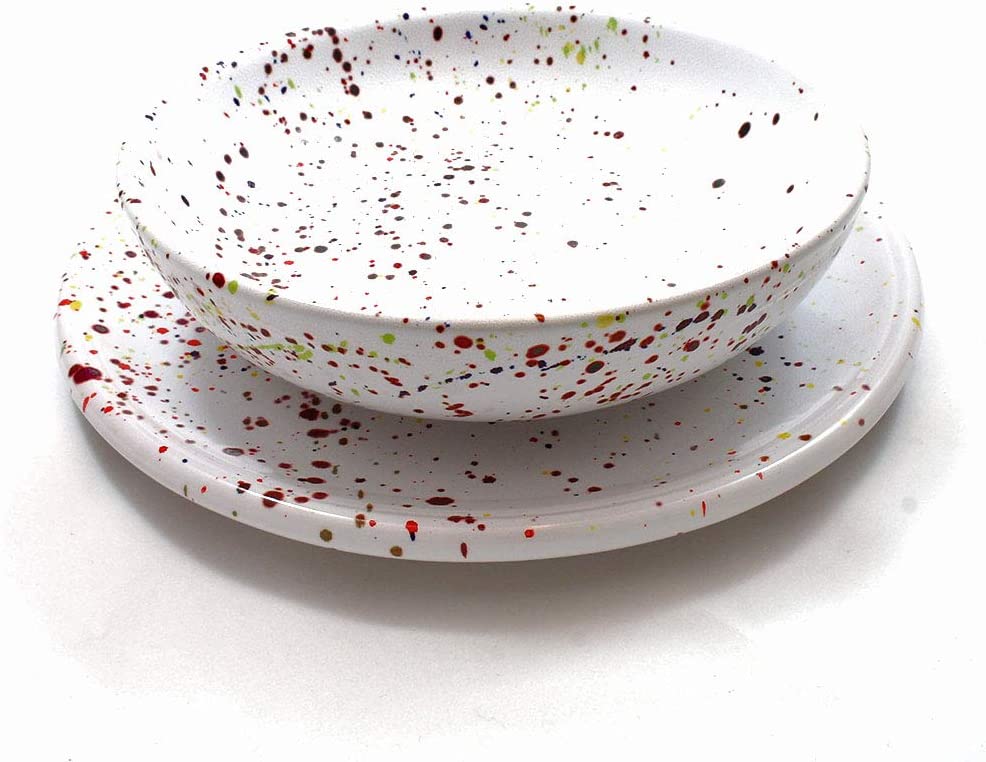 Ciotola Piatto Fondo in Maiolica di Faenza con Schizzi di Colori Collezione Pois