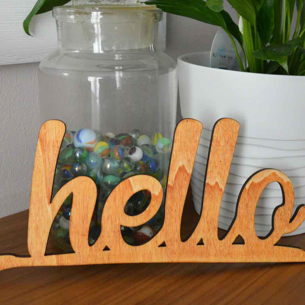 Scritta HELLO da parete in legno di castagno fatta a mano 100% Made in Italy