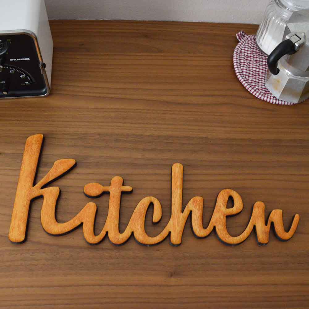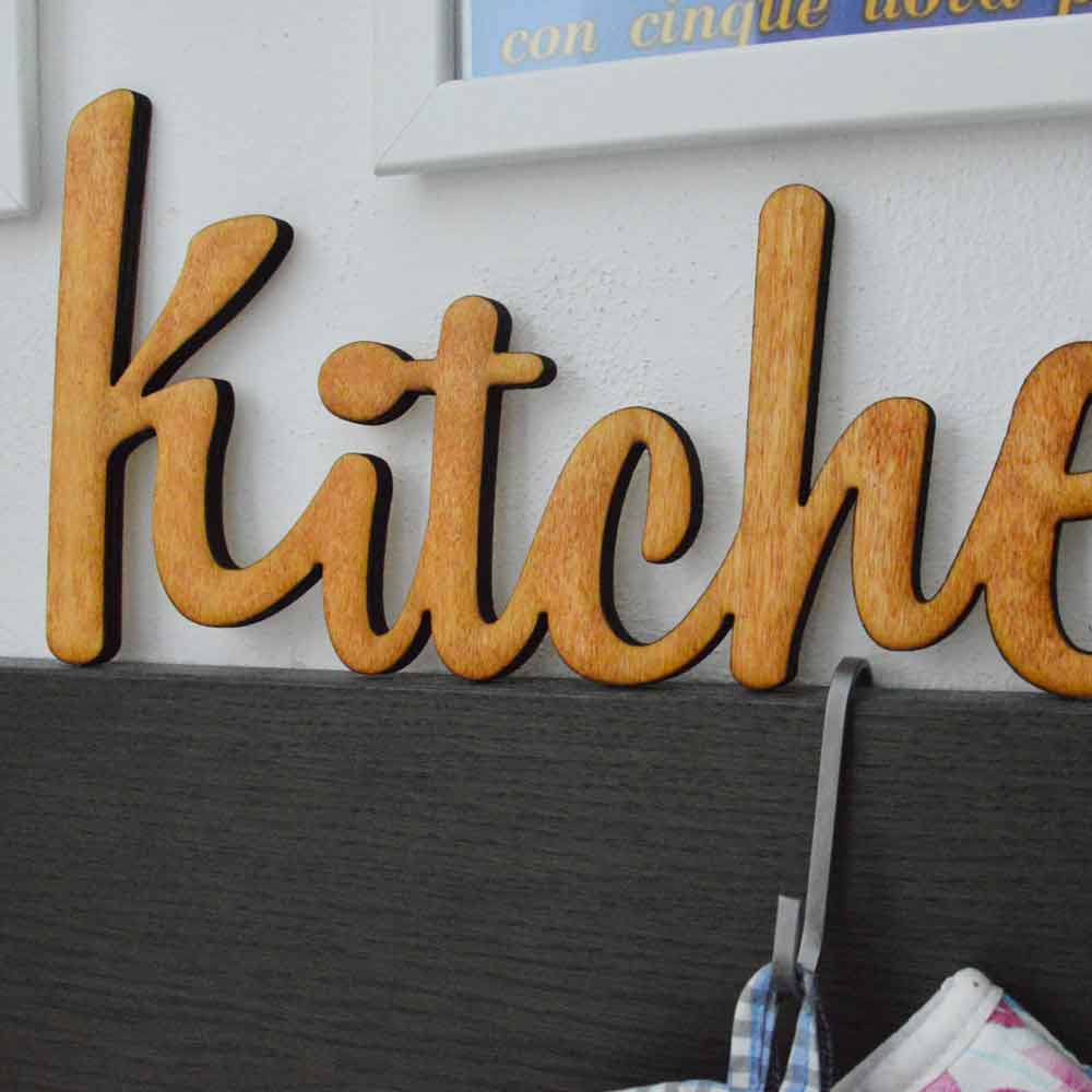Scritta da parete KITCHEN in legno di castagno fatta a mano Made in Italy | E-Italy | 100% Made in Italy