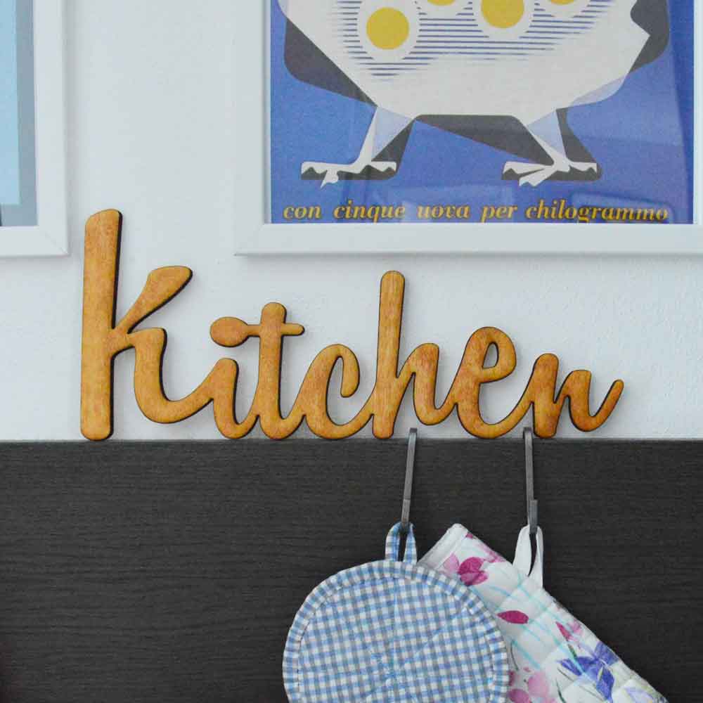 Scritta KITCHEN da parete in legno di castagno fatta a mano 100% Made in Italy