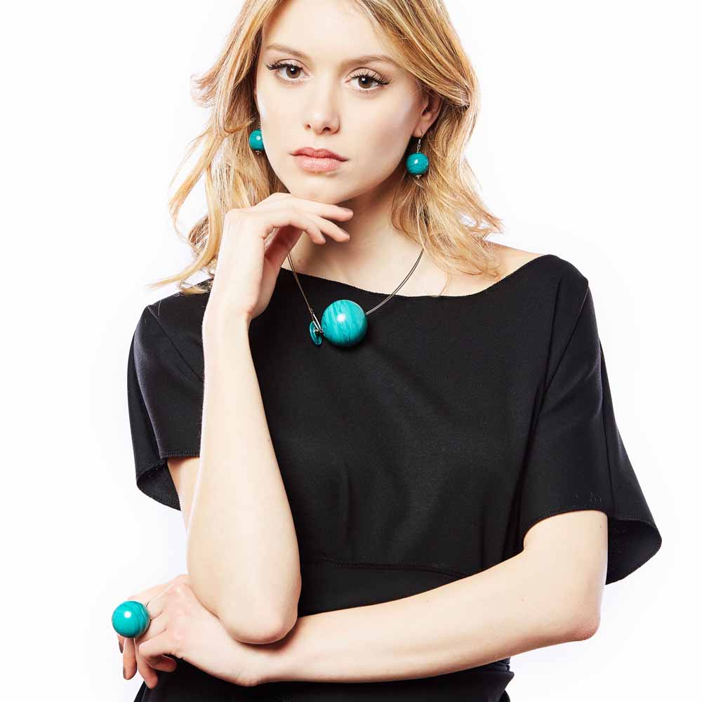 Collana artigianale design in vetro soffiato di Murano PIANETI Terra | E-Italy | 100% Made in Italy