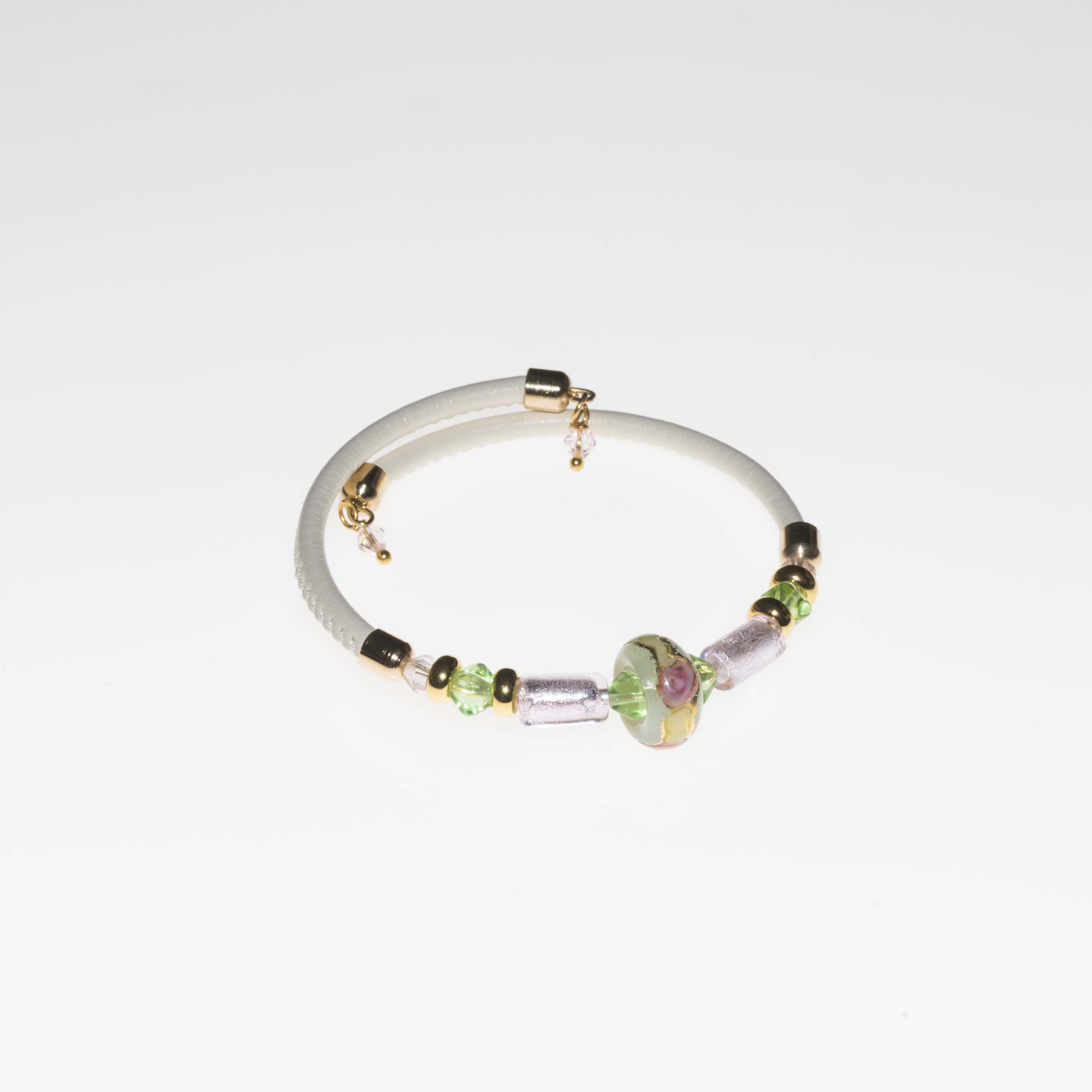 Bracciale bianco in pelle con perla in vetro di Murano PR Lampwork fatto a mano in Italia | E-Italy | 100% Made in Italy