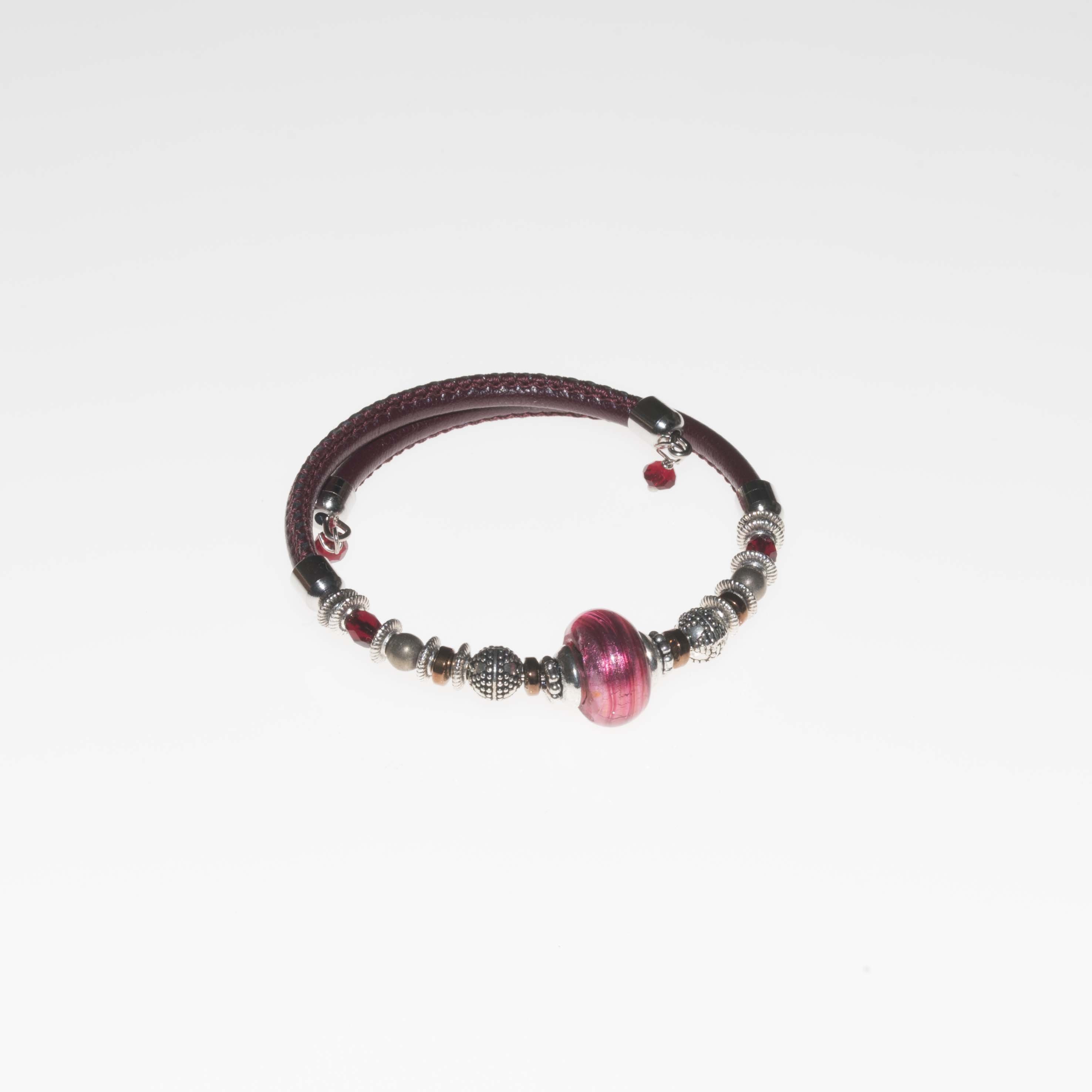 Bracciale viola in pelle con perla in vetro di Murano PR Lampwork fatto a mano in Italia | E-Italy | 100% Made in Italy