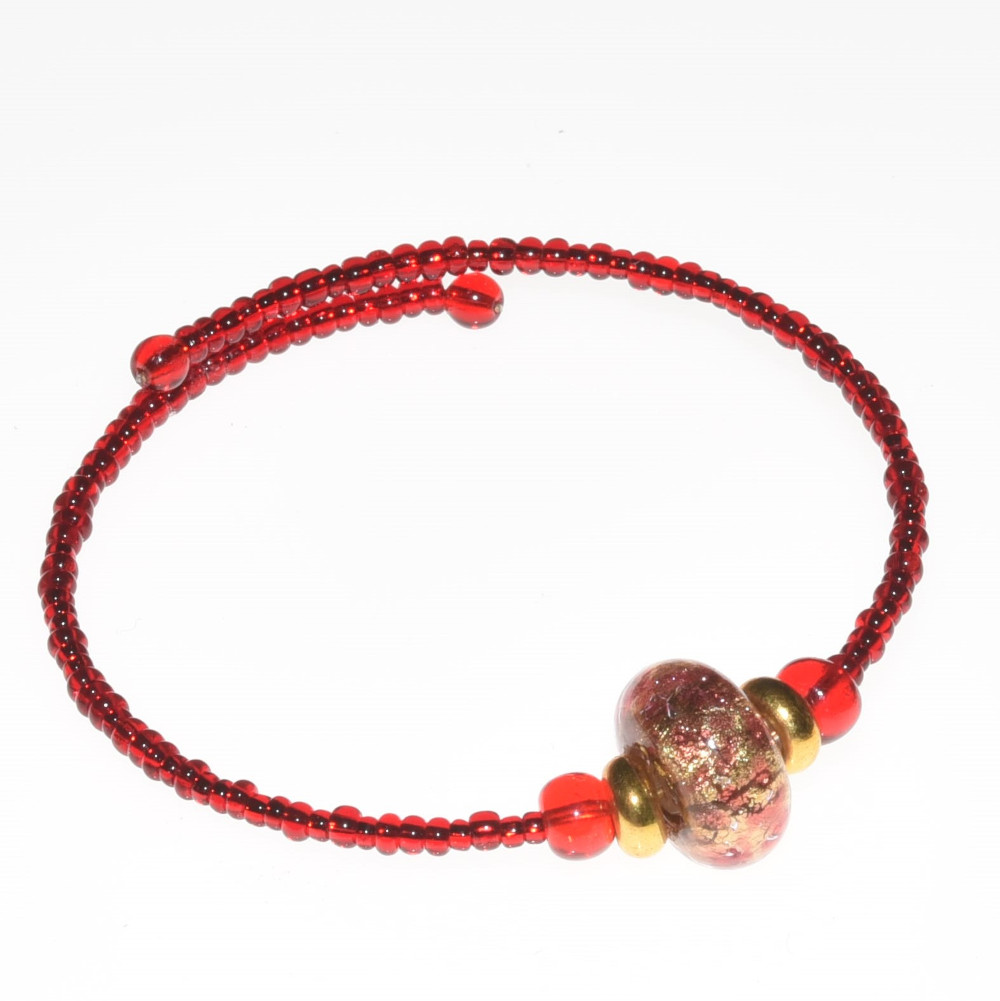 Bracciale in conteria rossa con perla in vetro di Murano PR Lampwork fatto a mano in Italia | E-Italy | 100% Made in Italy