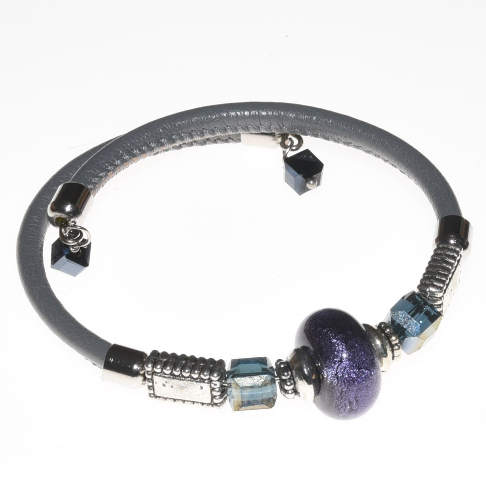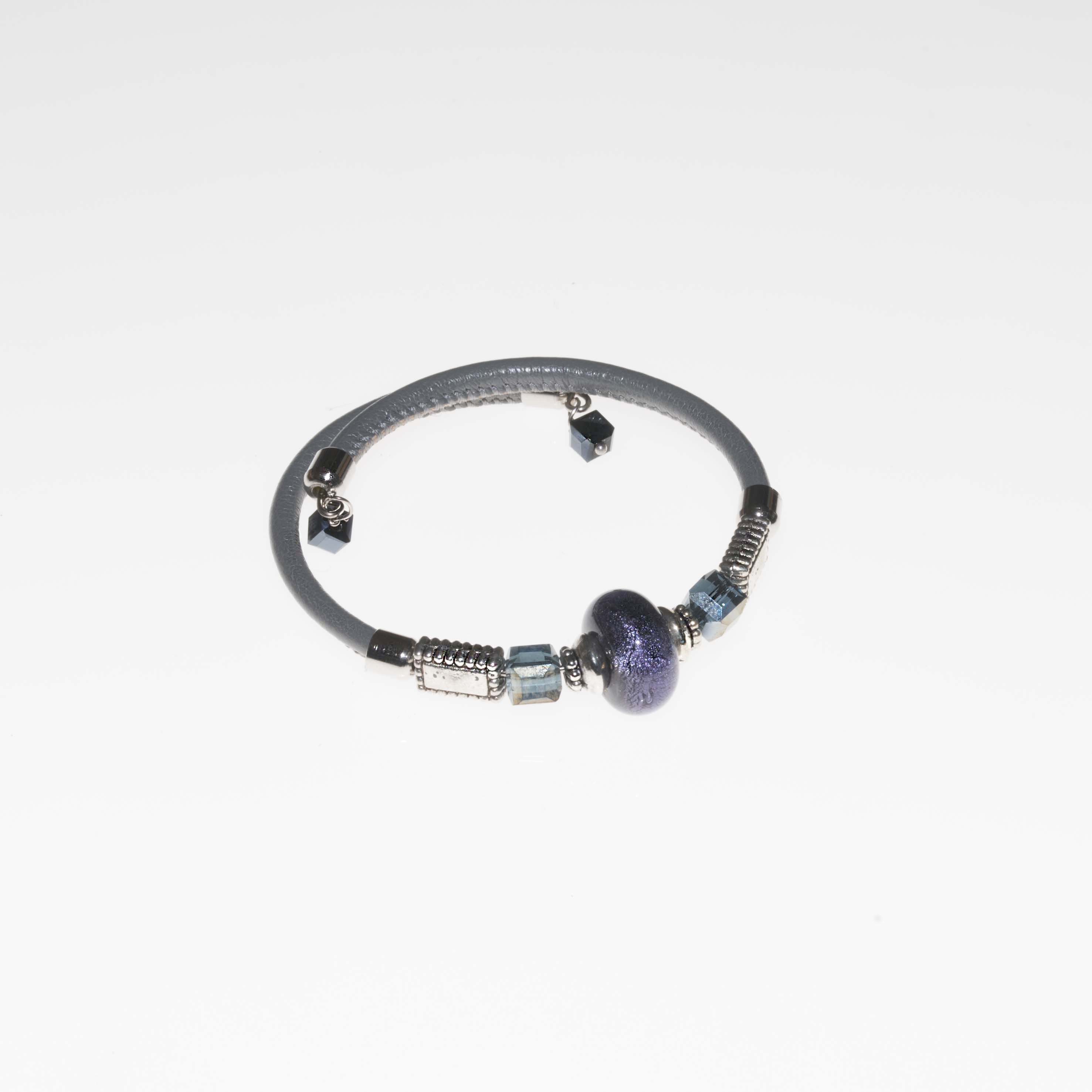 La collezione di bracciali regolabili del designer Roberto Perziano è fatta interamente a mano in vero vetro di Murano. Roberto è erede di una famiglia di vetrai dalla lunga storia e mette nelle sue creazioni tutta la passione per il vetro che ha respirato sin da piccolo nel laboratorio di famiglia. Egli destreggia perfettamente l’antica tecnica di lavorazione del vetro “a lume”, che gli permette di creare delle meraviglie come le perle che compongono questo bracciale. Il design è elegante e particolare, alternando perle più grandi, fiorate o in foglia oro, a perle di conteria veneziana; l’anima interna è in acciaio armonico, che permette al bracciale di adeguarsi ad ogni tipo di polso; il cinturino è rifinito in pelle ton-sur-ton, per un effetto elegantissimo.
