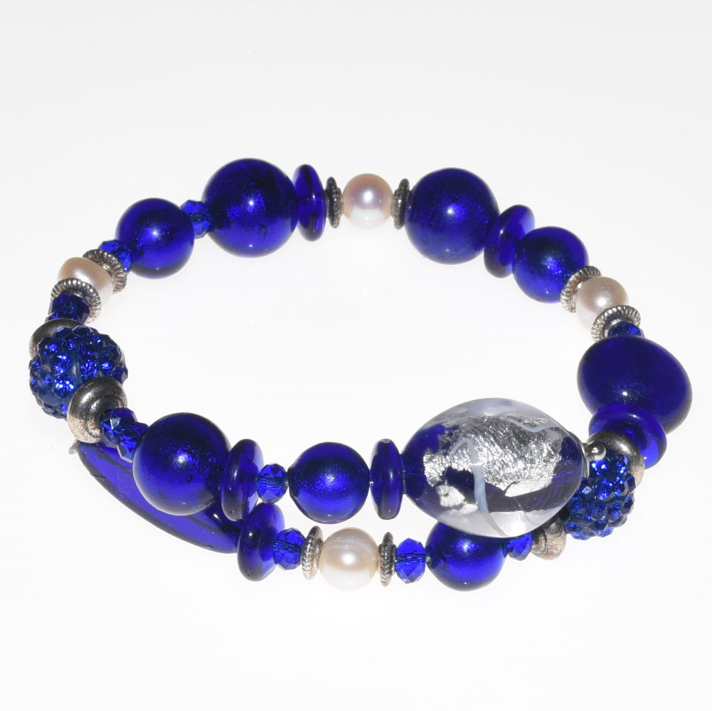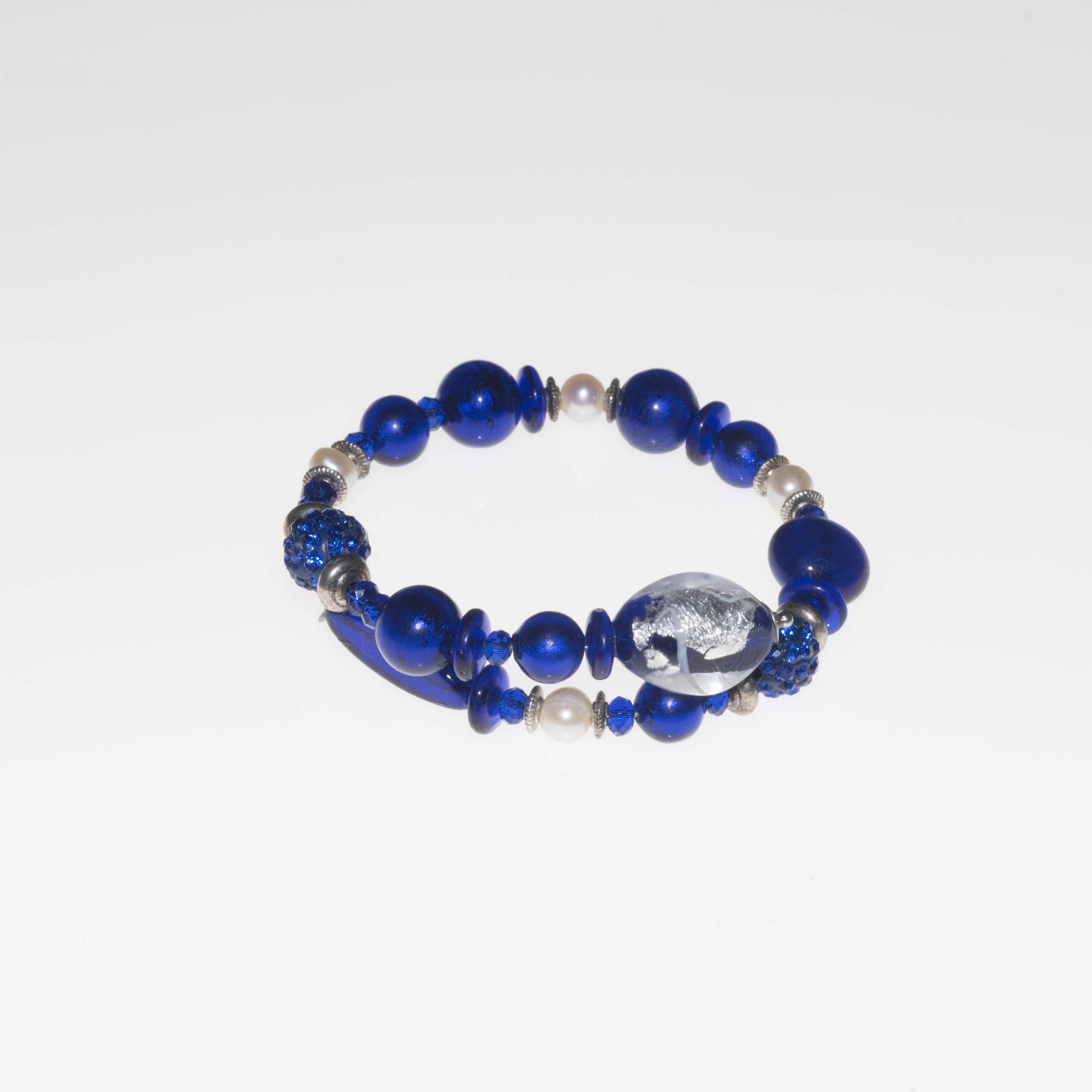 Bracciale blu in perle di vetro di Murano PR Lampwork
