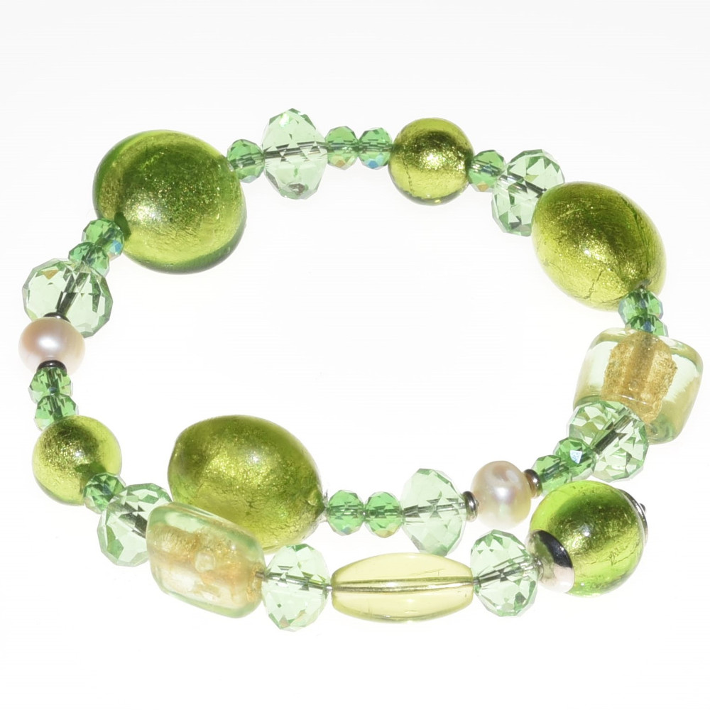 Bracciale verde in perle di vetro di Murano PR Lampwork