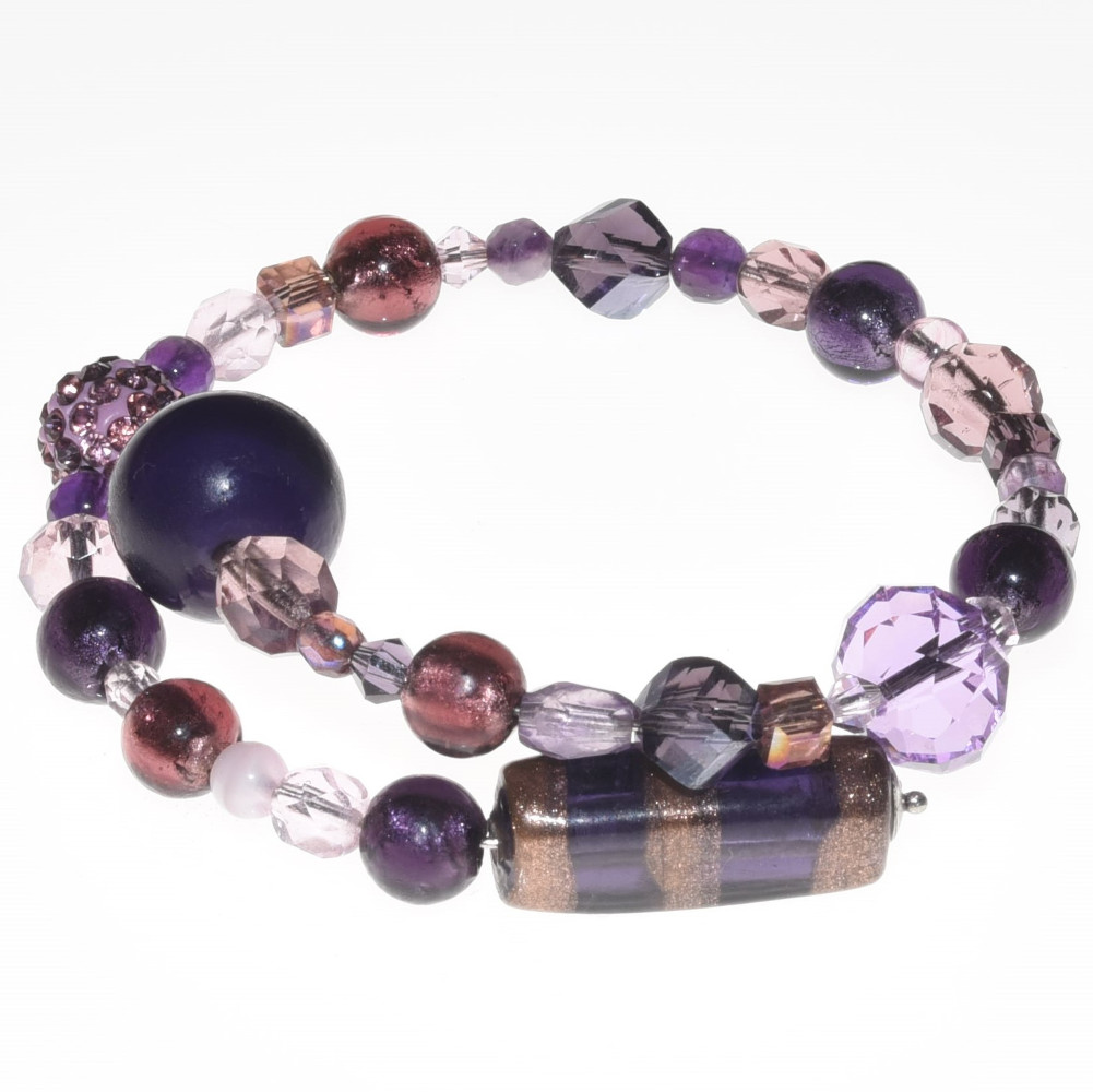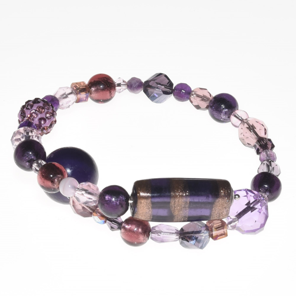 Bracciale viola in perle di vetro di Murano PR Lampwork