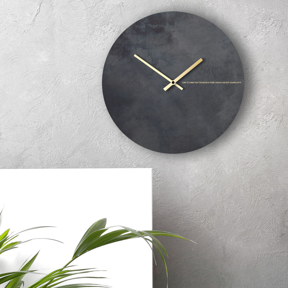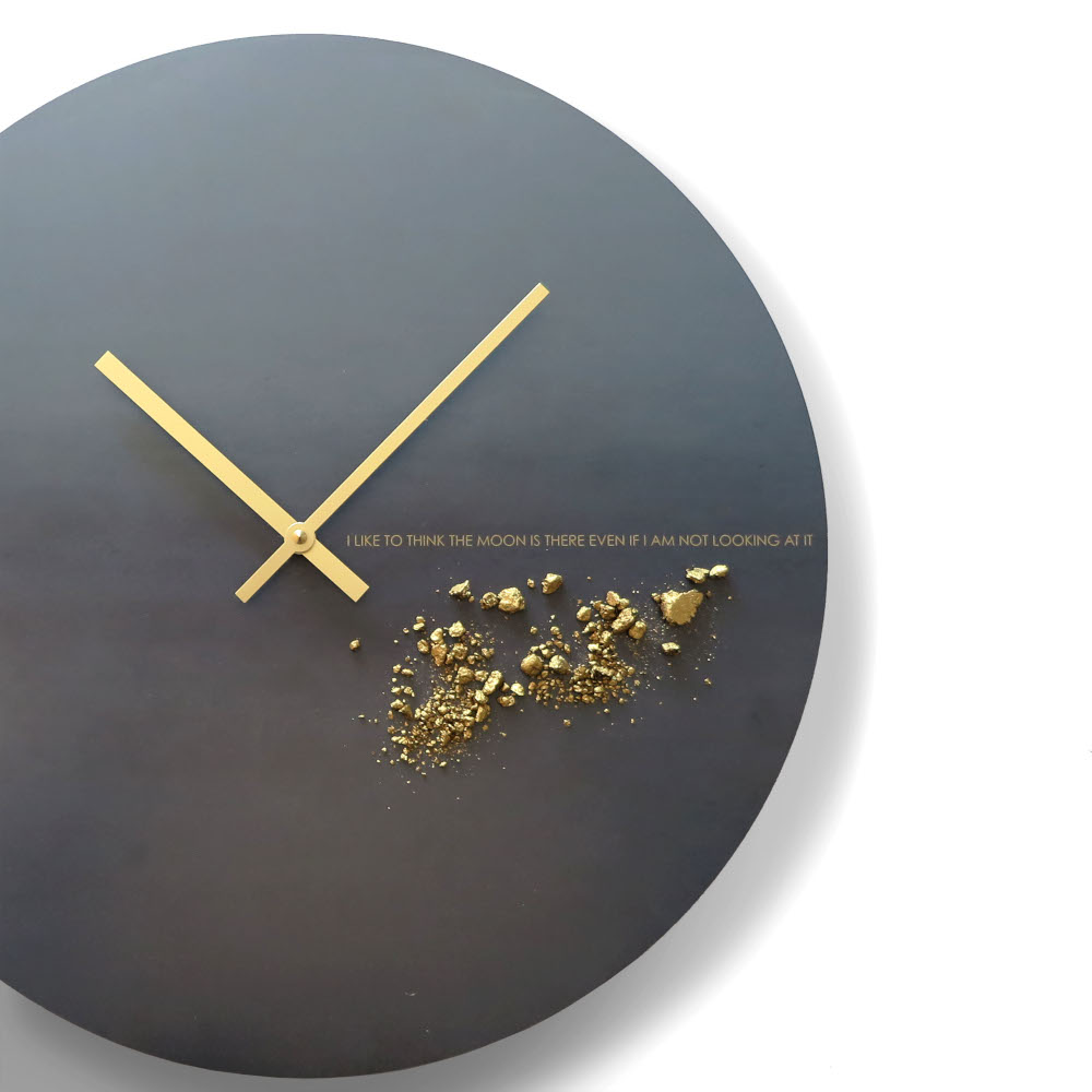 Orologio da parete rotondo Black Moon in acciaio calamina e polvere d’oro serigrafato a mano diametro 44 cm | E-Italy | 100% Made in Italy