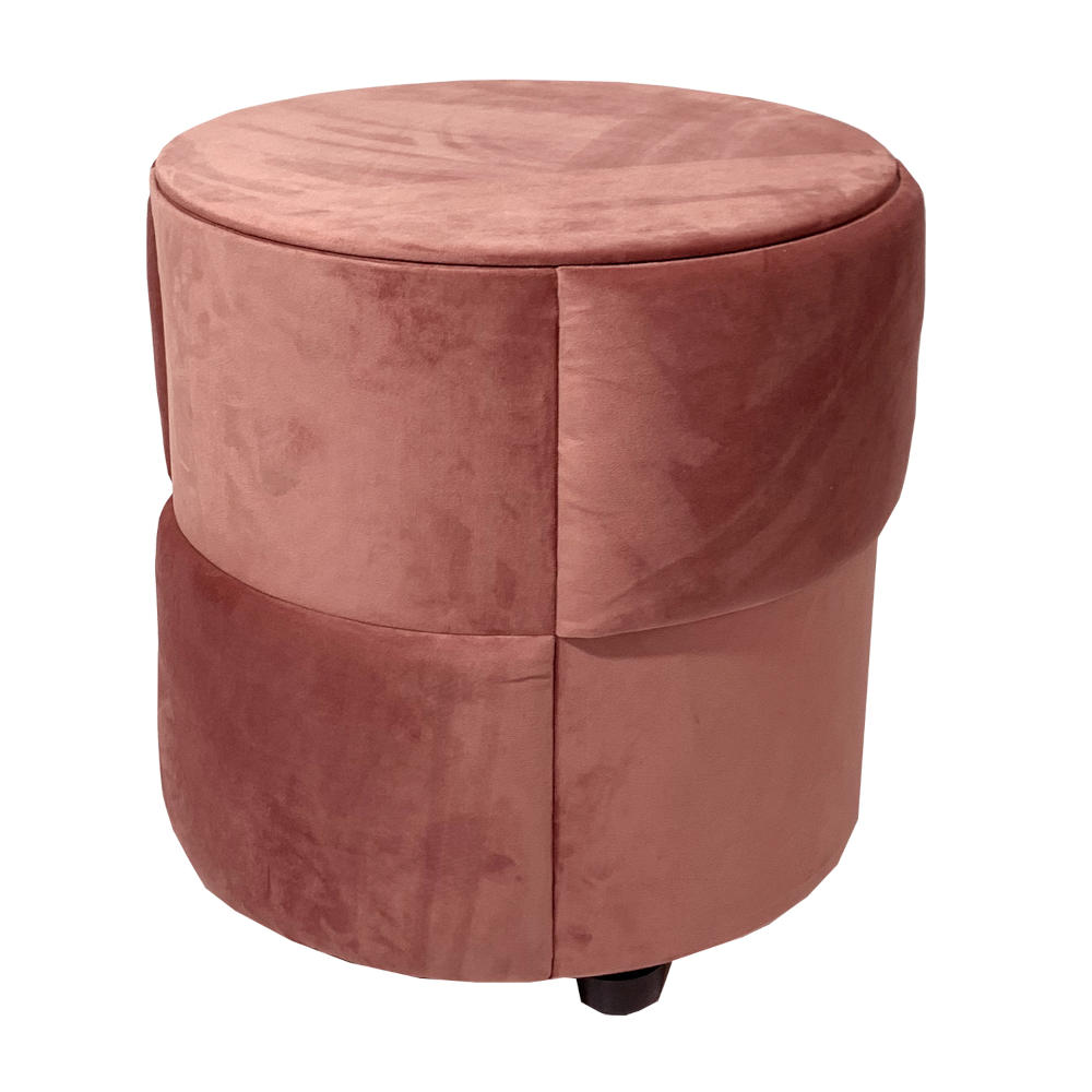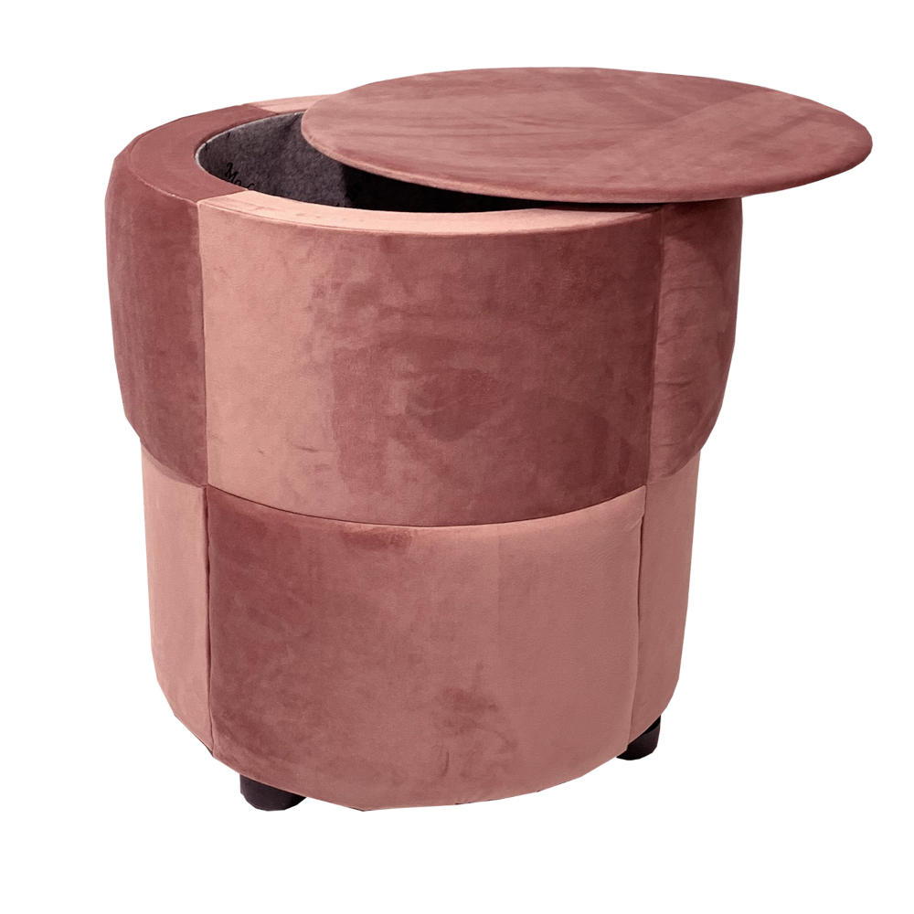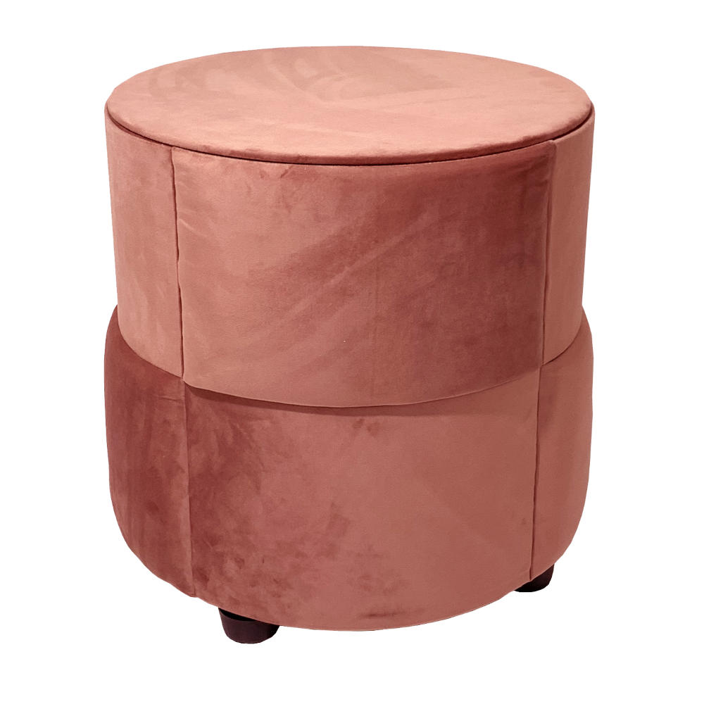 Pouf tavolino contenitore tondo rivestito in velluto color salmone 46x46 cm made in Italy
