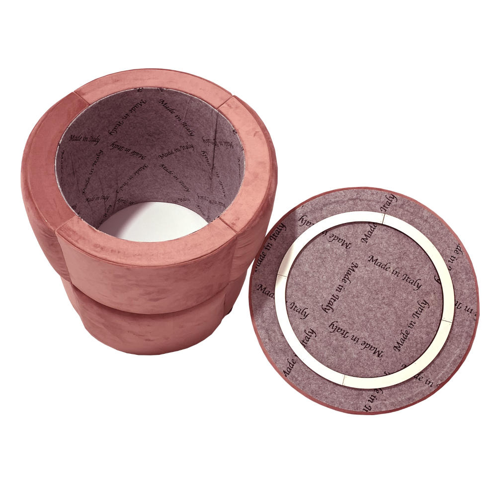 Pouf tavolino contenitore tondo in velluto color salmone 46x46 | E-Italy | 100% Made in Italy