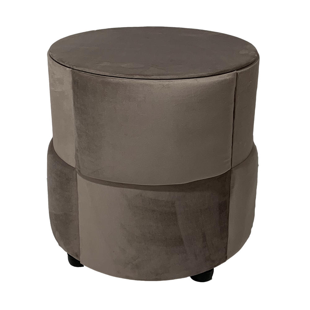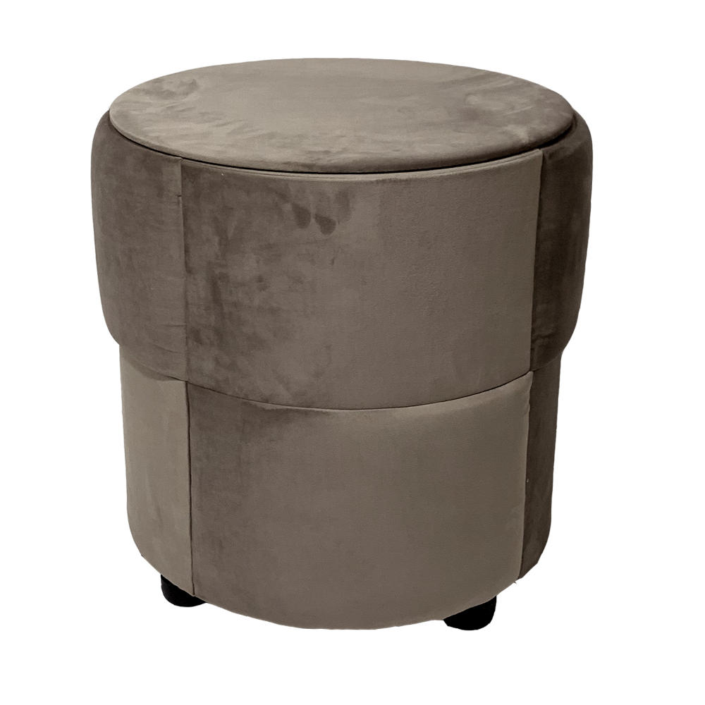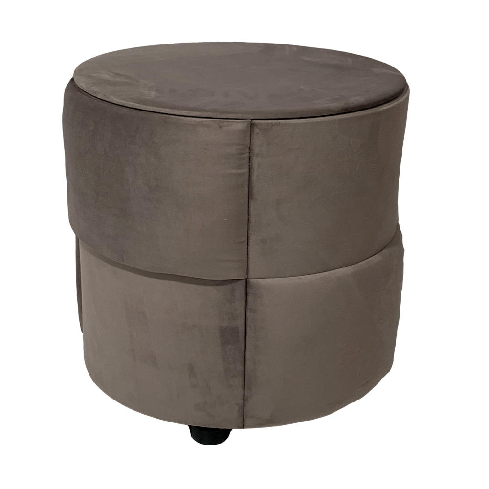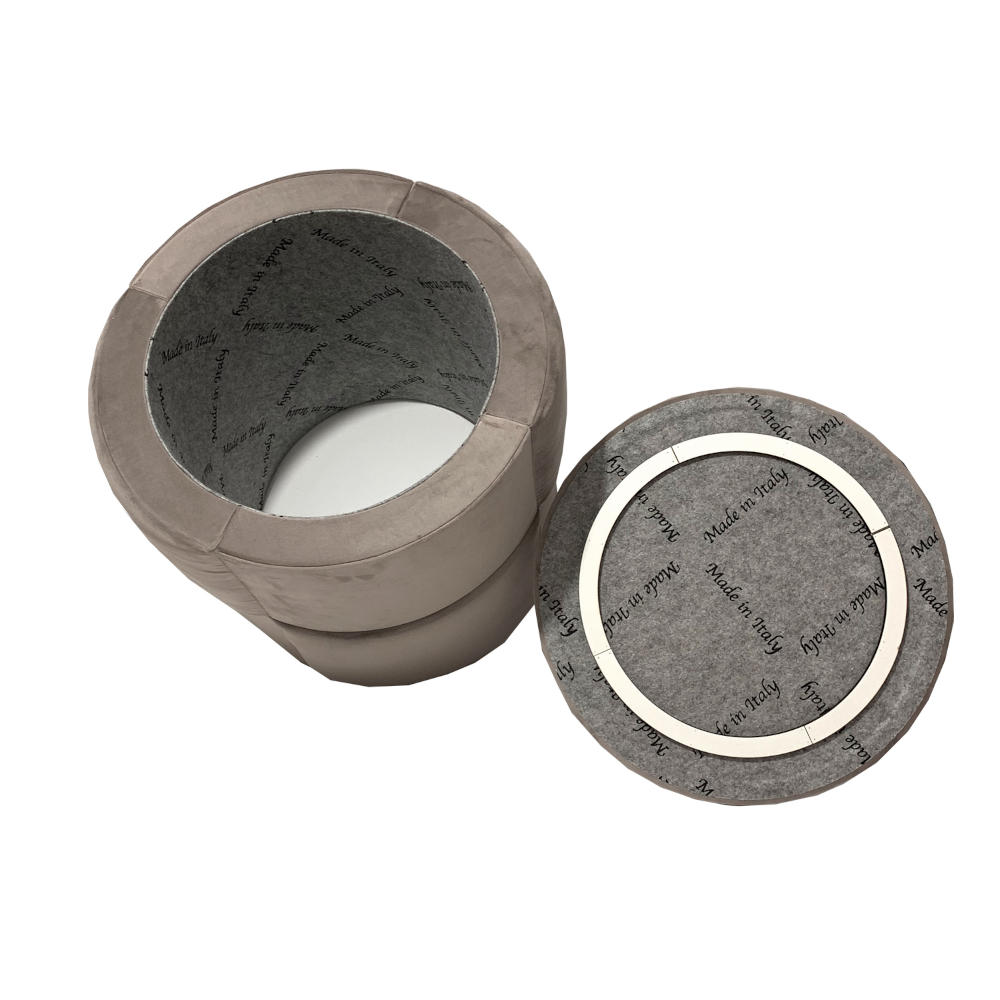 Pouf tavolino contenitore tondo rivestito in velluto color khaki 46x46 cm made in Italy