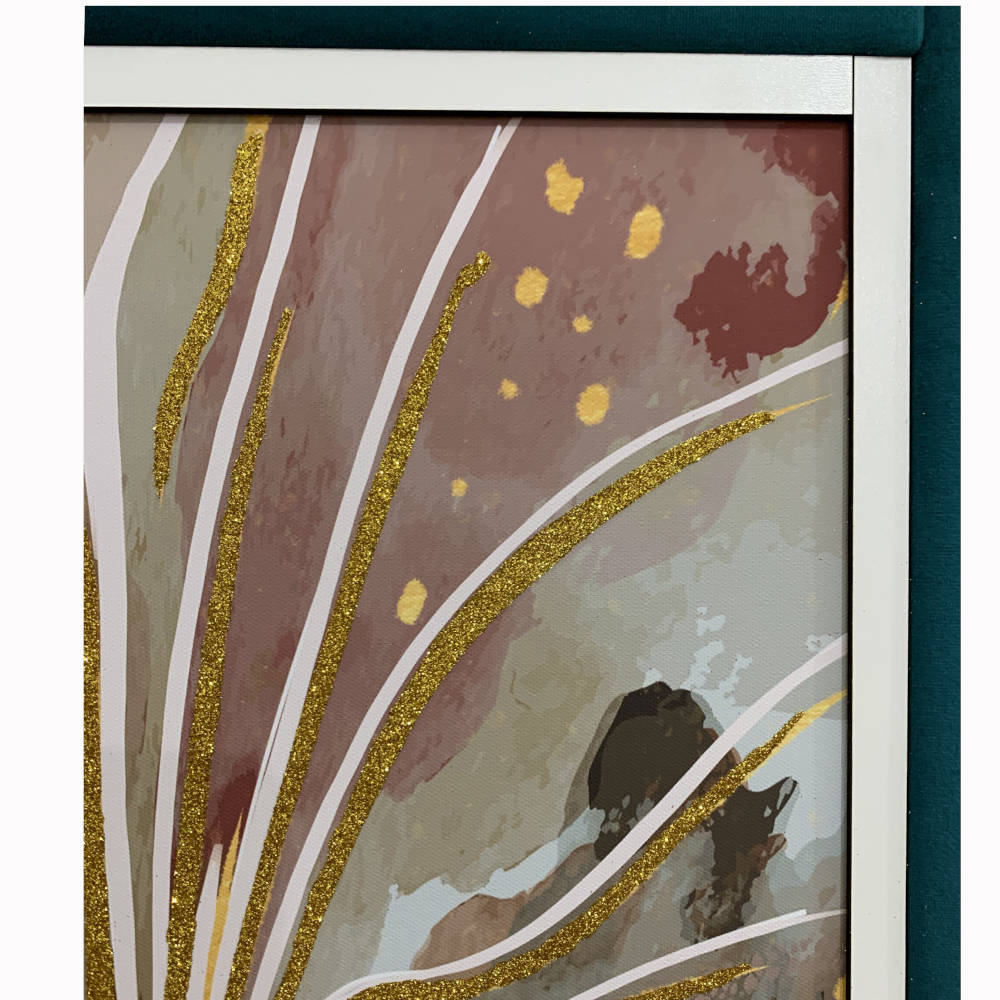 Quadro disegno floreale rosato e glitter oro con cornice in velluto 60x90 | E-Italy | 100% Made in Italy