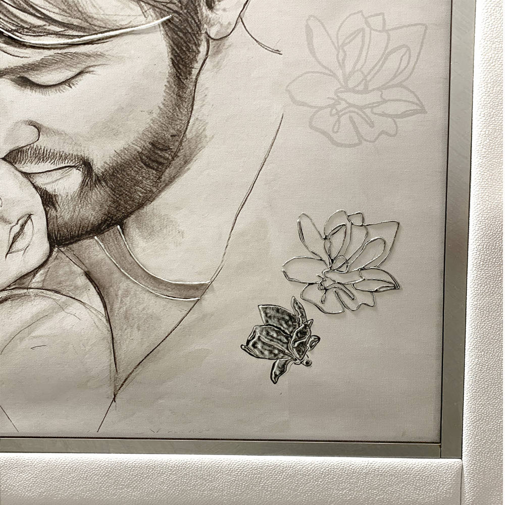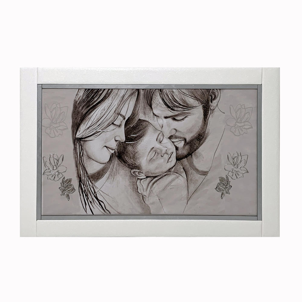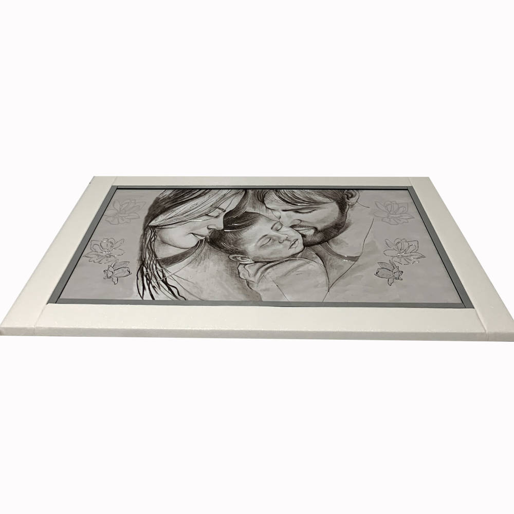 Quadro capezzale sacra famiglia con foglia argento e cornice in ecopelle 60x90 | E-Italy | 100% Made in Italy