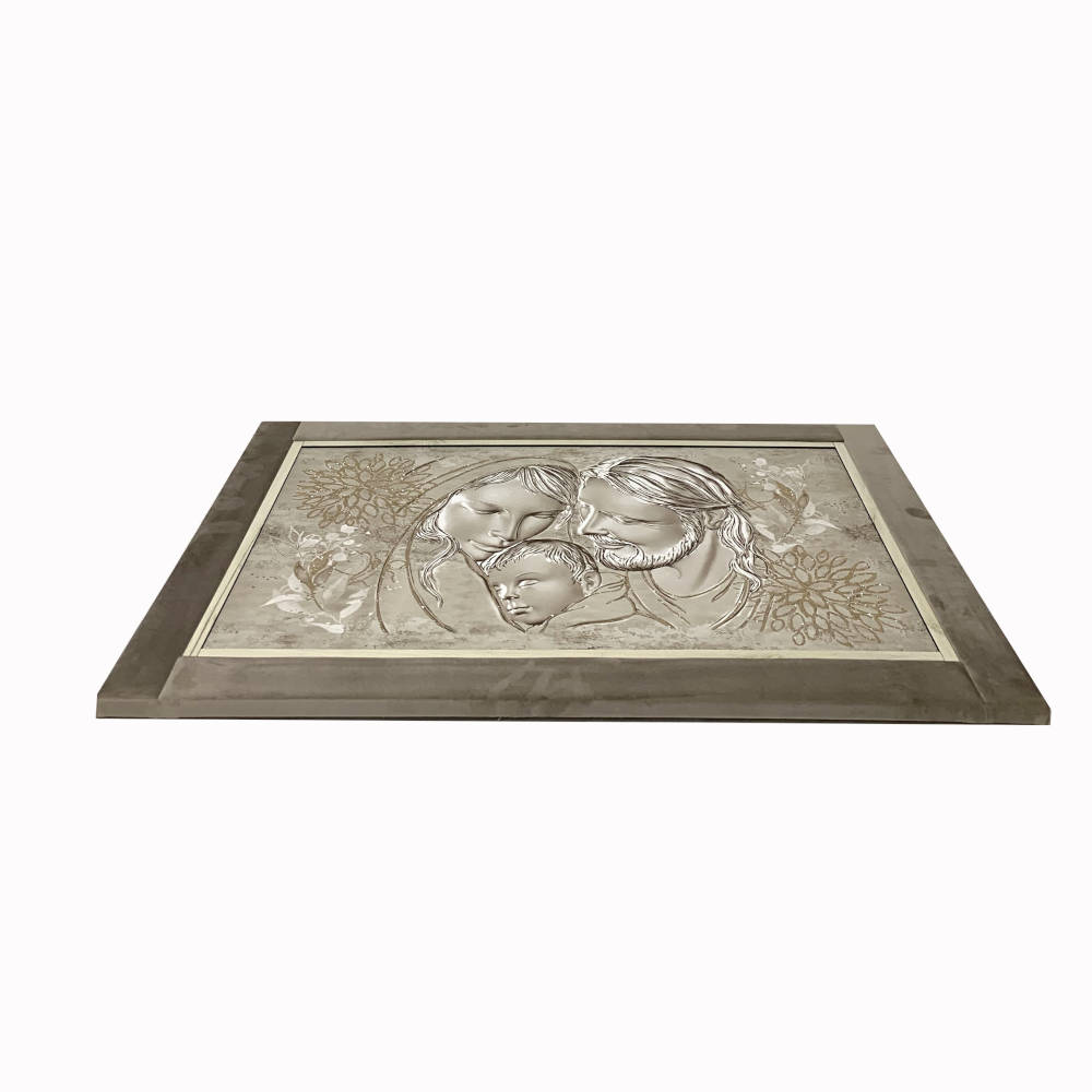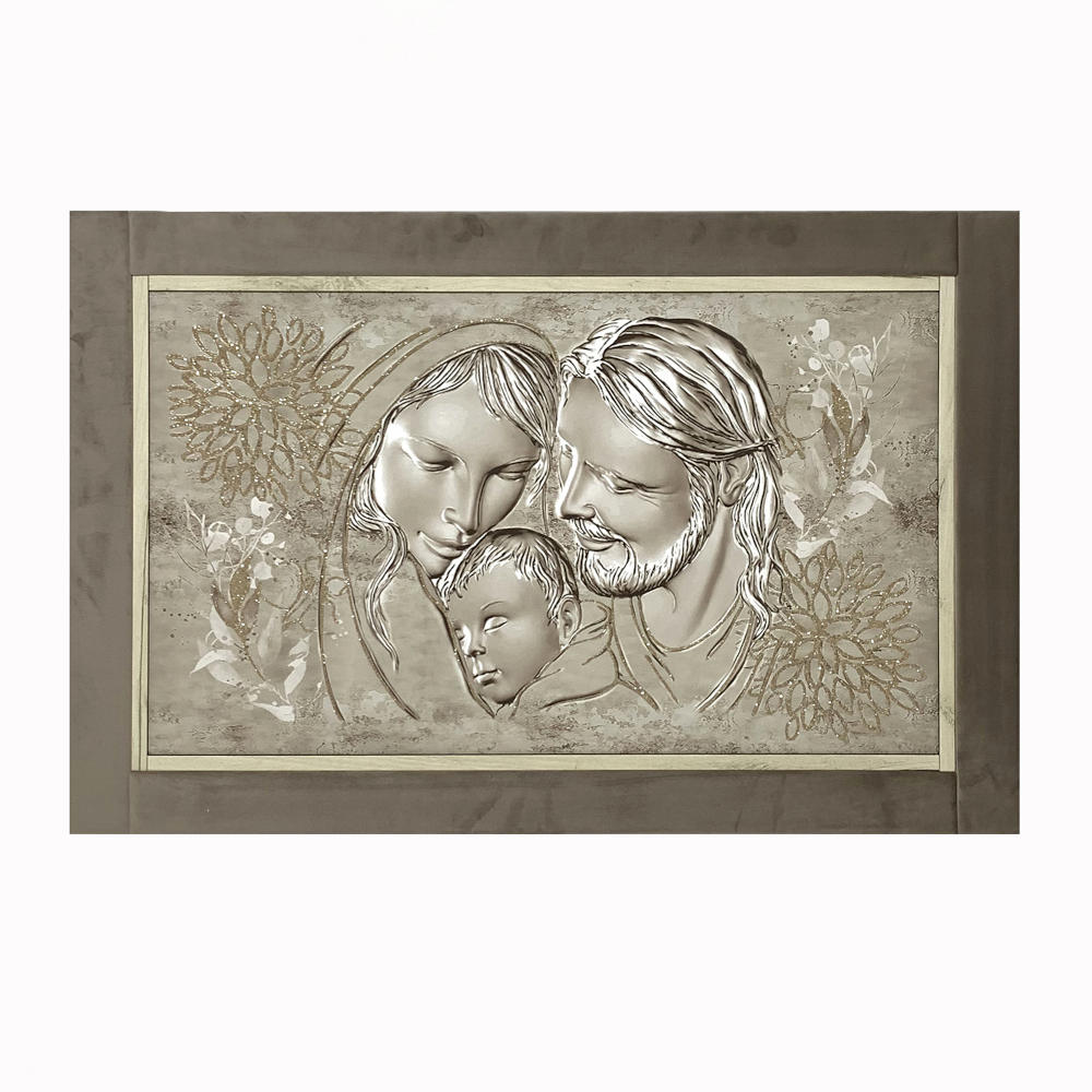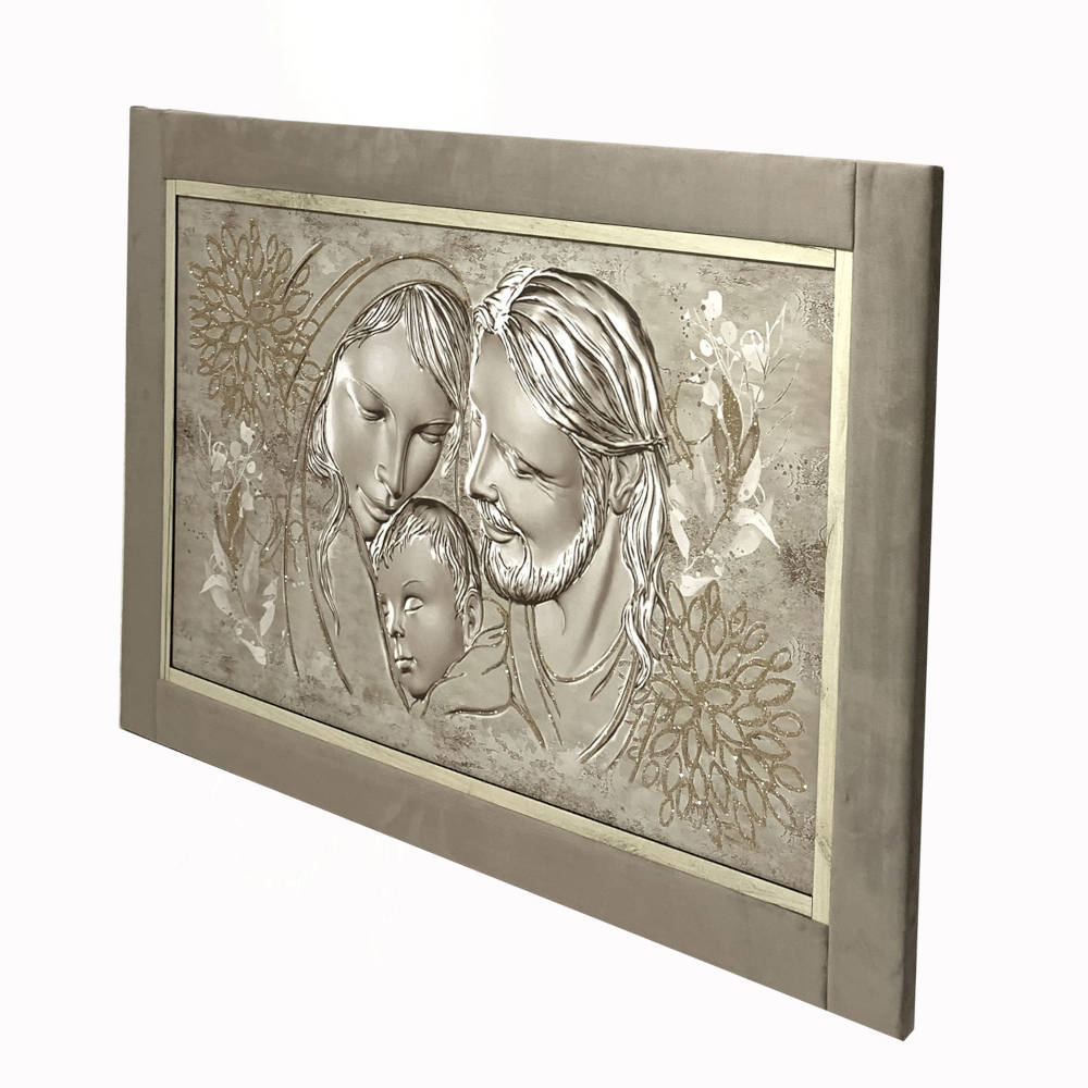 Quadro capezzale sacra famiglia con glitter champagne e cornice in velluto 60x90 | E-Italy | 100% Made in Italy