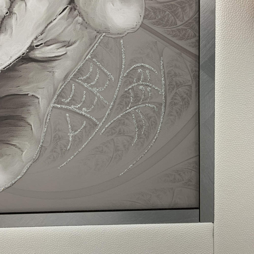 • Stampa su canvas rifinito a mano con glitter argento