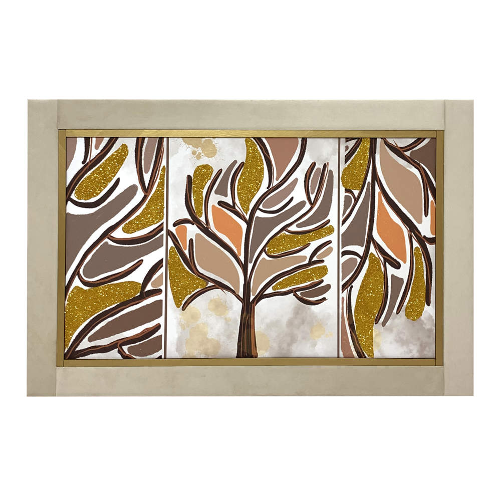 Quadro albero della vita e glitter oro con cornice in velluto color crema 60x90 | E-Italy | 100% Made in Italy