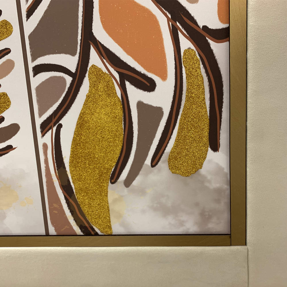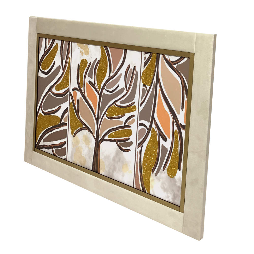Quadro Nara su canvas albero della vita e glitter oro con cornice in velluto color crema 60x90 cm