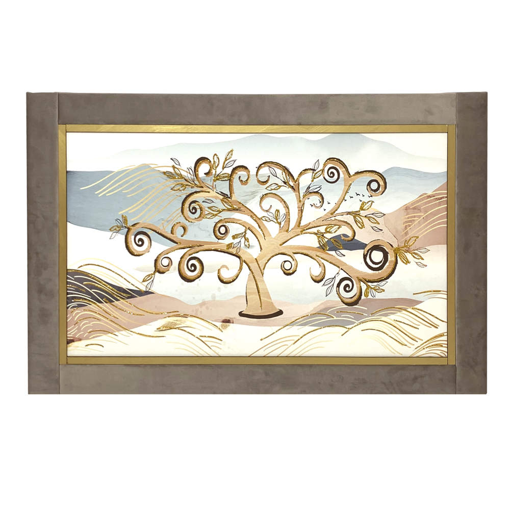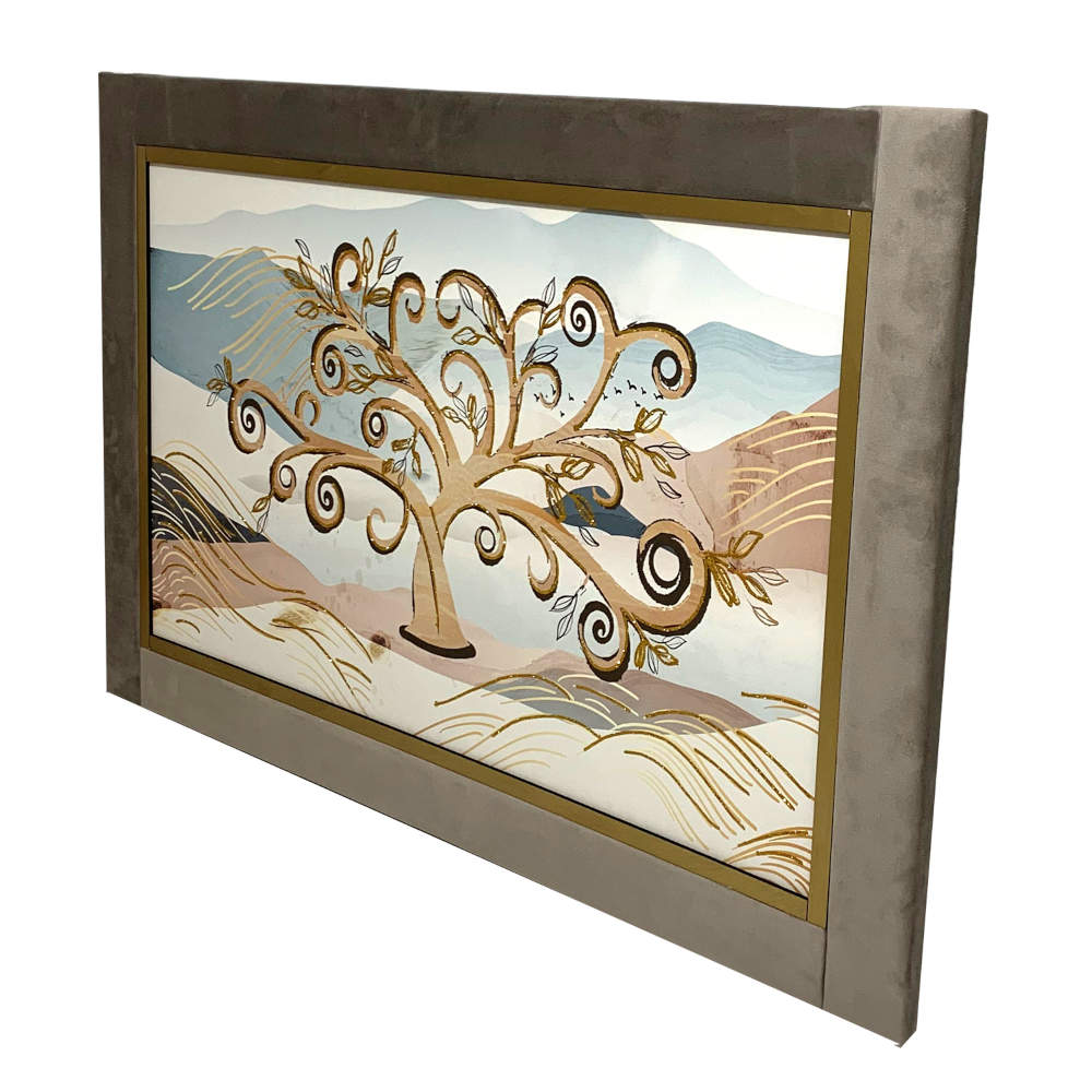 Quadro albero della vita e glitter oro con cornice in velluto color khaki 60x90 | E-Italy | 100% Made in Italy