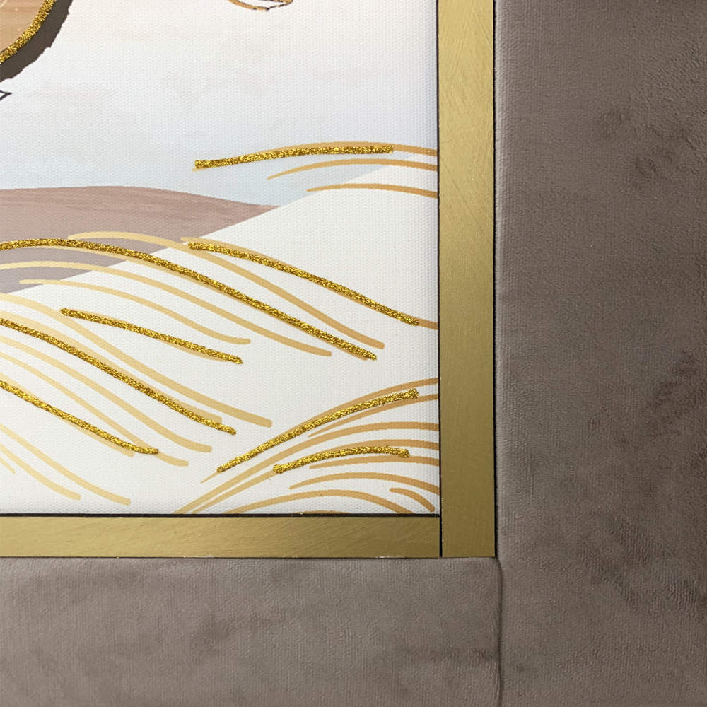 Quadro Nara su canvas albero della vita e glitter oro con cornice in velluto color khaki 60x90 cm