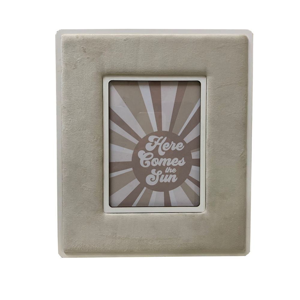 Portafoto singolo rivestito in velluto colore crema con particolari in legno bianco made in Italy