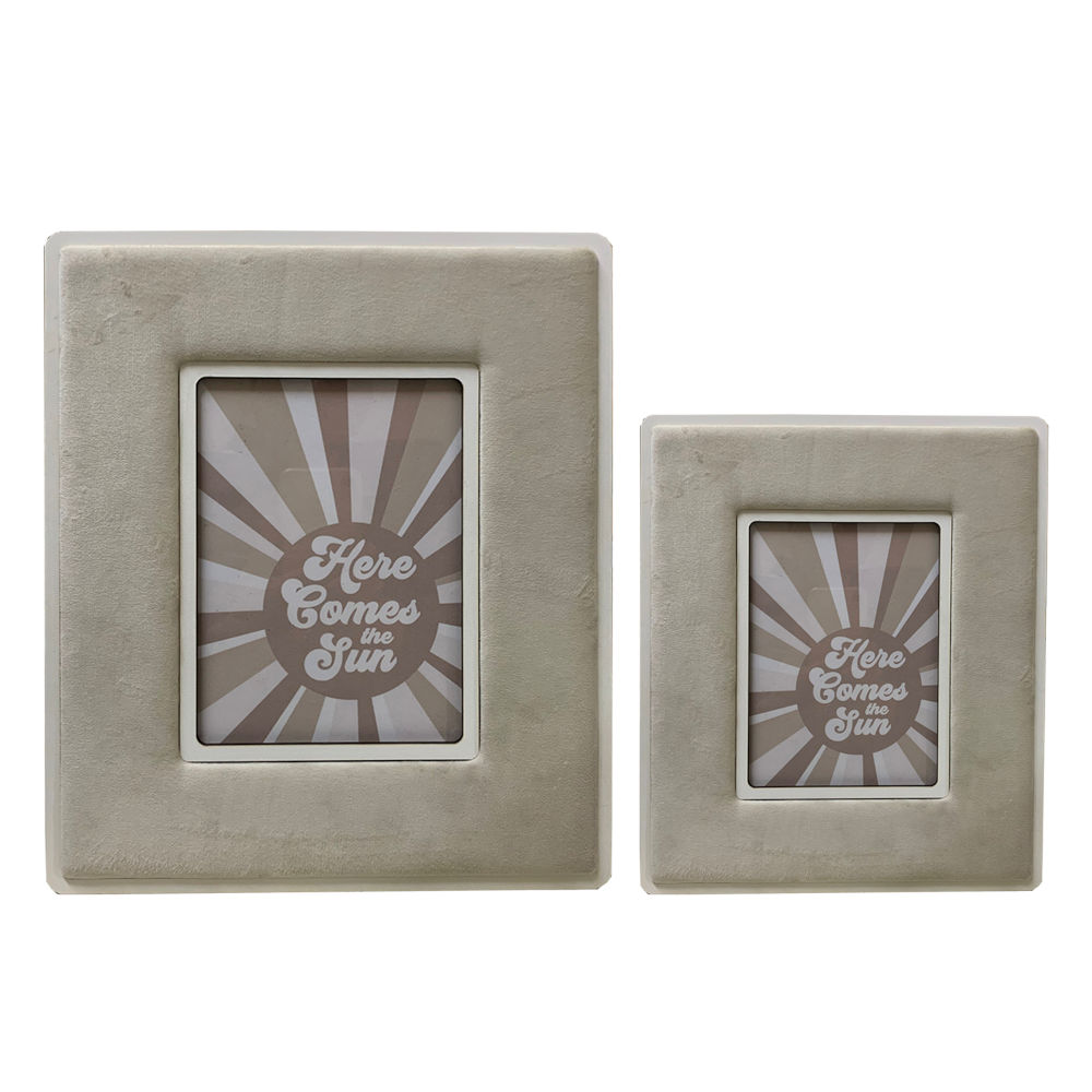 Portafoto rivestito in velluto colore crema con particolari in legno bianco | E-Italy | 100% Made in Italy