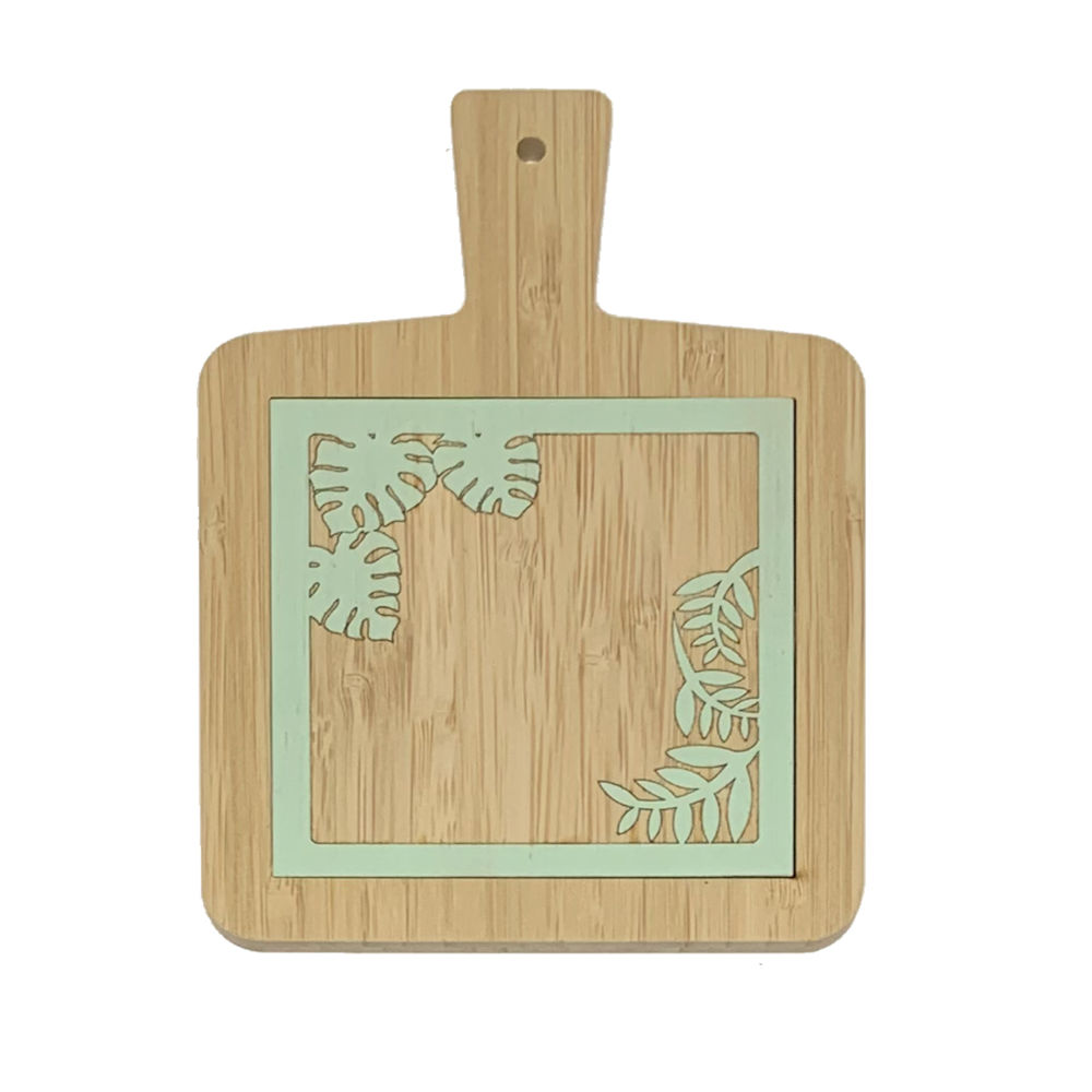 Tagliere in bamboo decorato a mano con motivo a foglie color azzurro | E-Italy | 100% Made in Italy