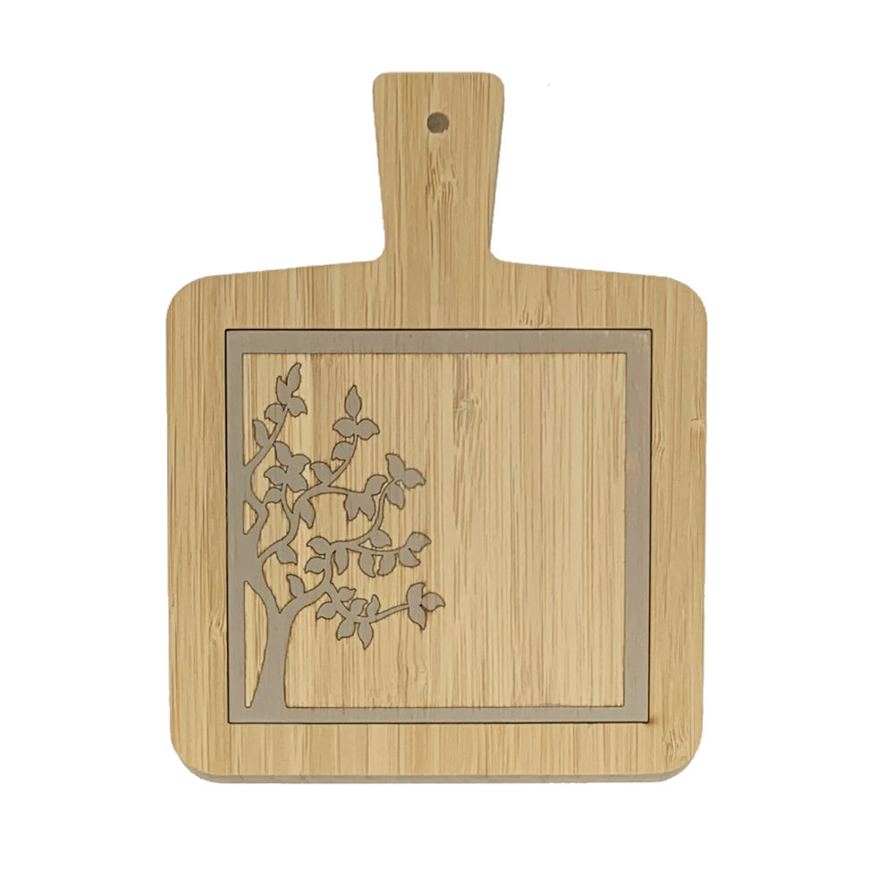 Tagliere in bamboo decorato a mano con motivo albero su fondo color tortora made in Italy